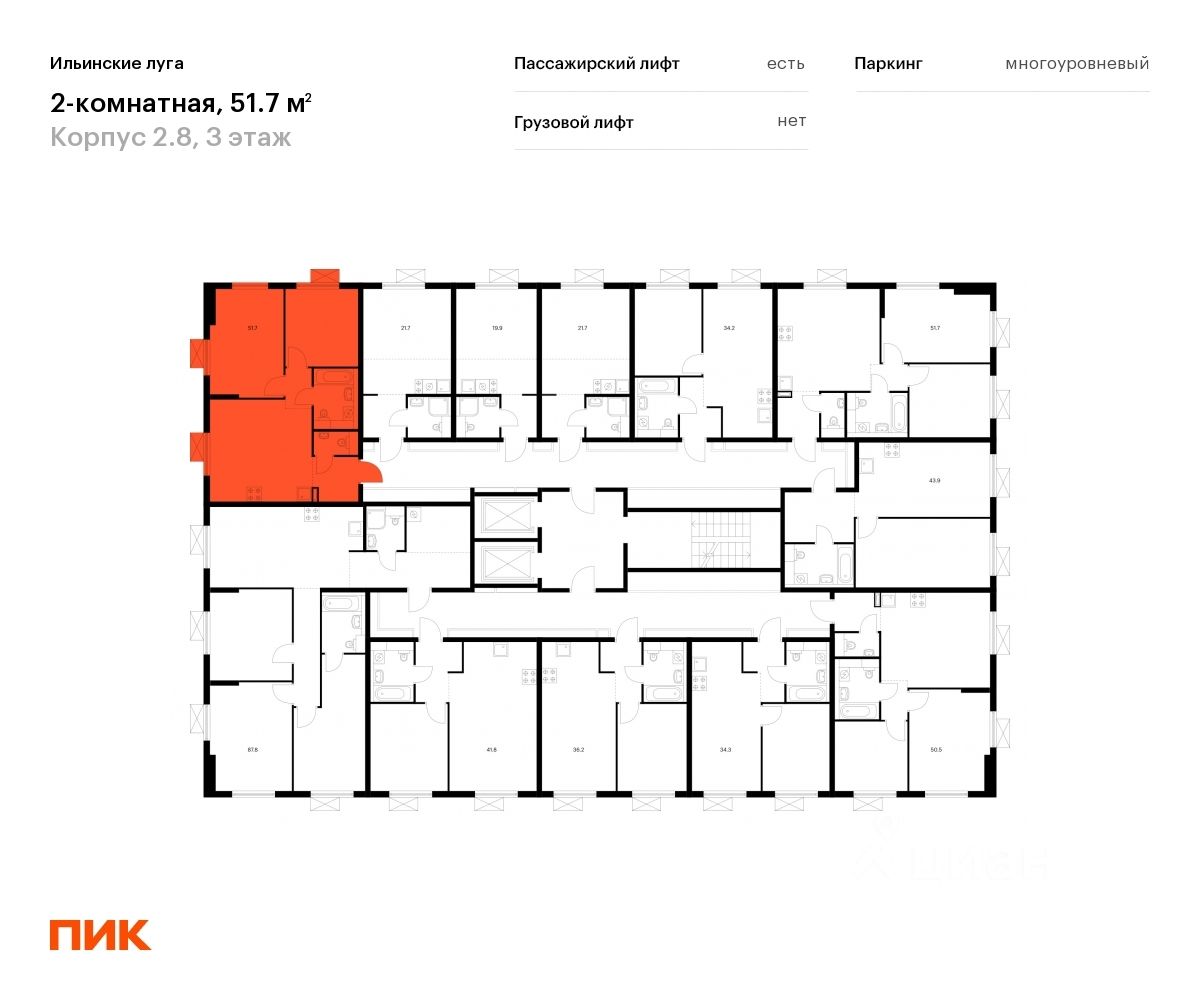 Продаётся 2-комн. квартира площадью 51,7 кв.м на 3 этаже 9 этажного дома (Корпус 2.8, Секция 1) проекта ПИК Ильинские луга. Светлый просторный подъезд на уровне земли, функциональная планировка, большие окна, c отделкой.