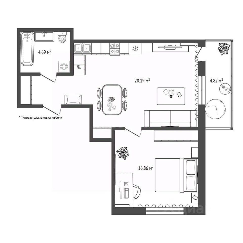 Объект полностью готов к заселению — выполнен качественный ремонт с использованием долговечных материалов, подобрана функциональная мебель, что избавляет от необходимости дополнительных вложений.