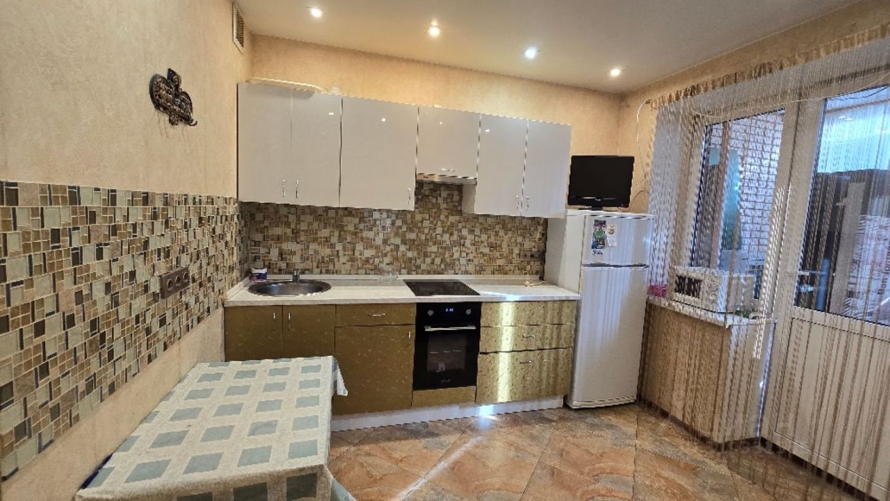 Светлая теплая квартира в современном кирпичном доме. Квартира 42 кв.м., не угловая. Встроенная кухня, холодильник, диван. Лоджия (застеклена), выход на лоджию с кухни. В коридоре встроенный шкаф. В комнате - стенка, диван, телевизор.