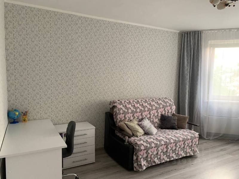 Комната полу-ЭРКЕРОМ - просторная (20 м.кв.), вид из окна во двор. Общая 42,7 м.кв., кухня 9 м.кв. Косметический ремонт. СанУзел раздельный. Полы - ламинат и плитка. Окна в комнате и на кухне - ПВХ. Балкон застеклён - рамы дерево, пол - с подогревом. Удобная ниша под холодильник. В просторной прихожей доп ''тёмная'' комната. Домофон. Металлическая дверь.