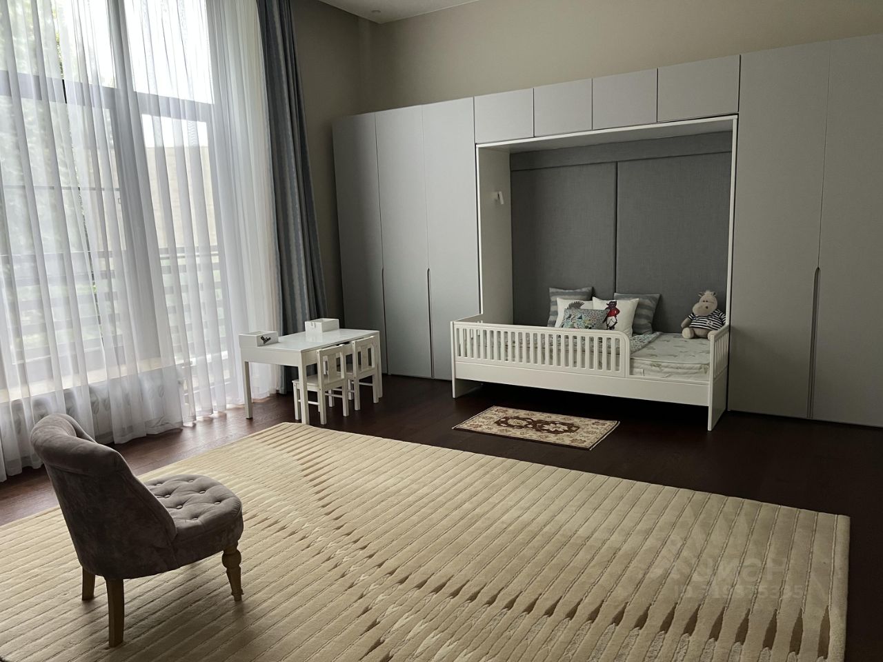 Дом в современном стиле в коттеджном поселке Премиум класса Резиденция Рублево в 1 км. от МКАД, в районе бухты Живописная по проекту английских архитекторов. Планировочные решения : 5 спален, гостиная, обеденная зона, кухня, кабинет, 6 с/у, гардеробные, постирочная, терраса-патио с выходом в парк, блок для персонала, гараж. Дом меблирован, панорамное остекление, дровяной камин . На территории комплекса: видео-наблюдение, охрана, пропускная система, детские площадки, детский сад, баскетбольная площадка, парк. Вблизи расположены: фитнес клуб, рестораны, лесной массив, гимназия им. Примакова, до Рублево-успенского шоссе 7 минут на автомобиле, до Крокус-Сити 10 минут, дорога до Москвы менее 30 минут. Поселок заселен.