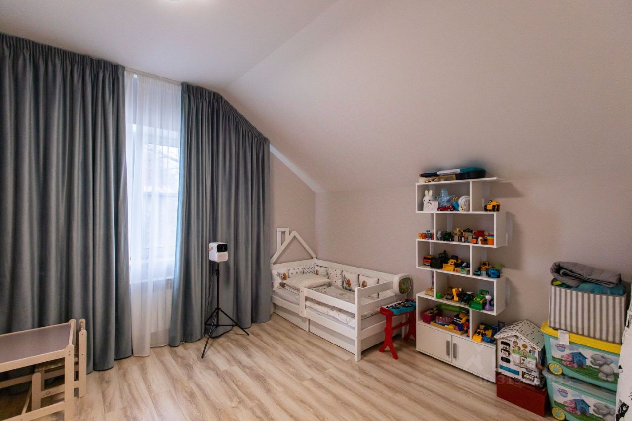 ПОЭТАЖНОЕ ОПИСАНИЕ: 1-ый уровень: прихожая с гардеробной комнатой и сан/узлом, спальня гостевая, сезонная гардеробная, гостиная со вторым светом, кухня, столовая с выходом на участок и постирочная. 2-ой уровень: хозяйская спальня с сан/узлом и гардеробной, две детские спальни с сан/узлом и встроенной гардеробной.