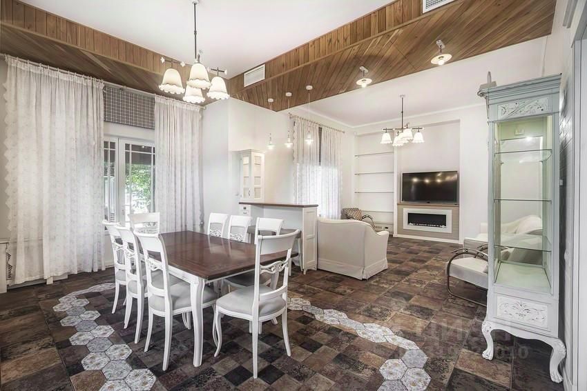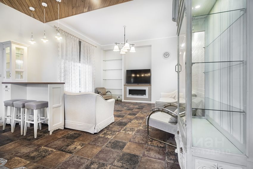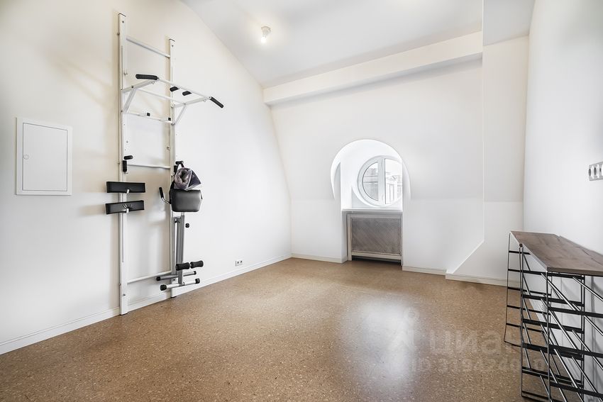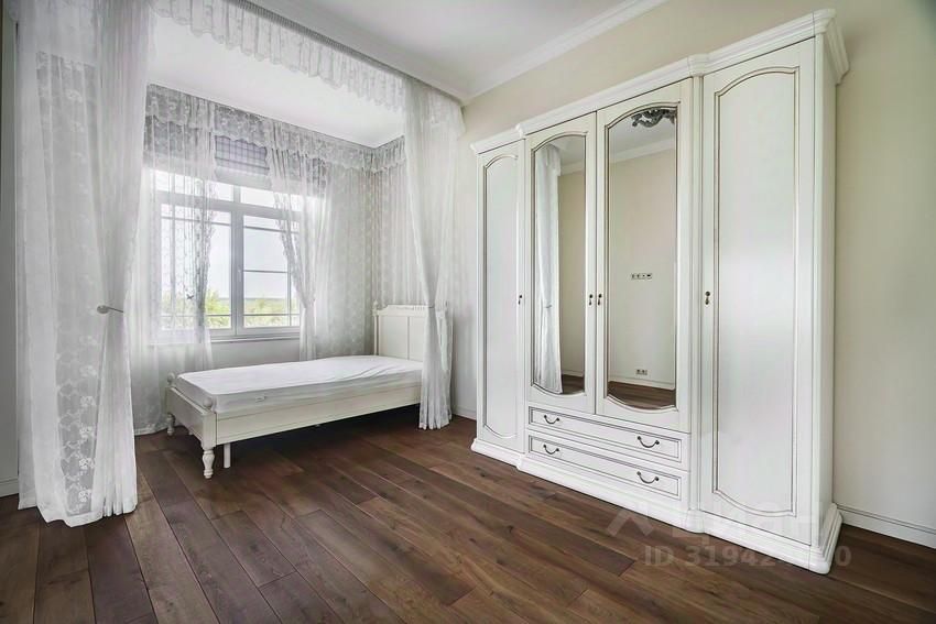 Планировка дома: Цоколь: домашний кинотеатр с кухней, сезонная гардеробная, комната-холодильник, 2 кладовых, котельная, постирочная, с/у 1 этаж: тамбур, холл, гардеробная, с/у, кухня-столовая с выходом на улицу, гостиная с биокамином, квартира для персонала с кухней, с/у и отдельным входом 2 этаж: мастер-спальня с гардеробной и ванной комнатой, оснащённой джакузи и душевой кабиной, а также отдельным с/у, спальня с с/у и комната для гостей с с/у и выходом на балкон Мансарда: спортзал, спальня с с/у, кабинет-спальня со своим с/у