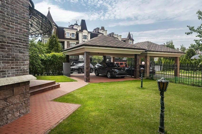 На участке расположены закрытая беседка-барбекю с летней кухней и кладовым помещением, уютная уличная зона отдыха с навесом и крытая стоянка на 2 м/м.