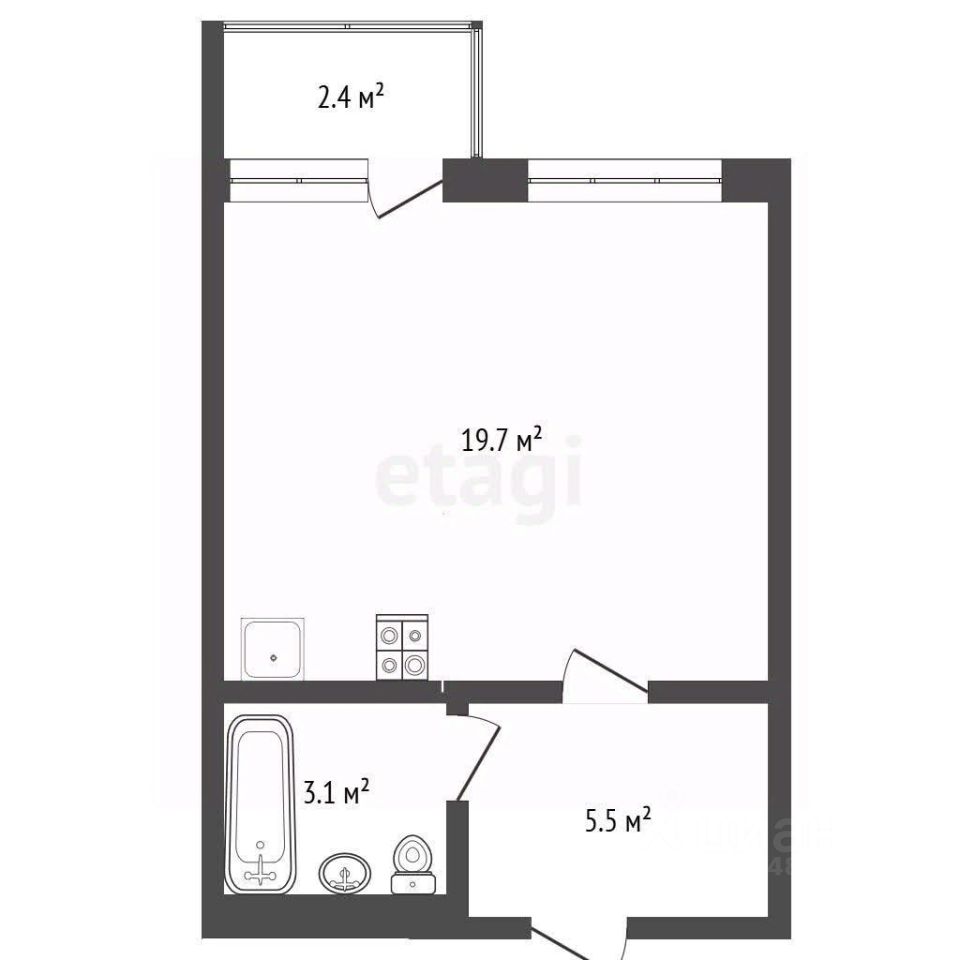Общая площадь с учетом лоджии - 30,7 кв.м, комната 19,7 м2. Окна: 2-ух камерный стеклопакет. Полы: без стяжки. Высота потолков: 2,74 м.