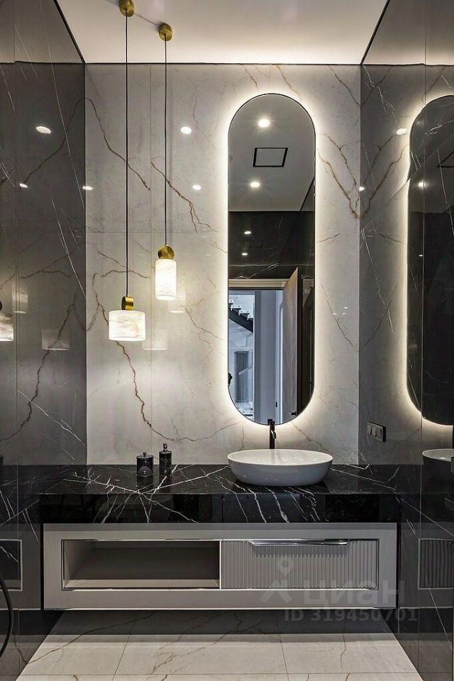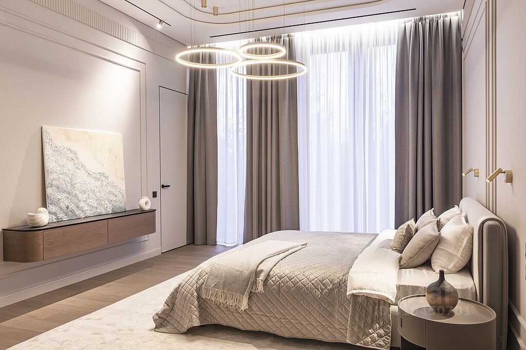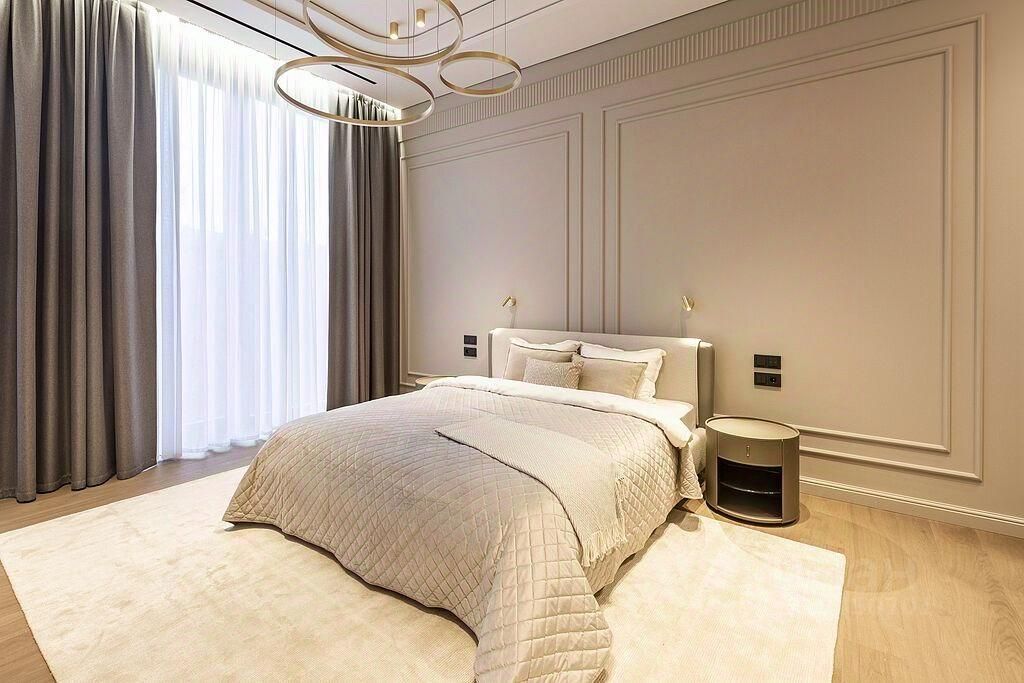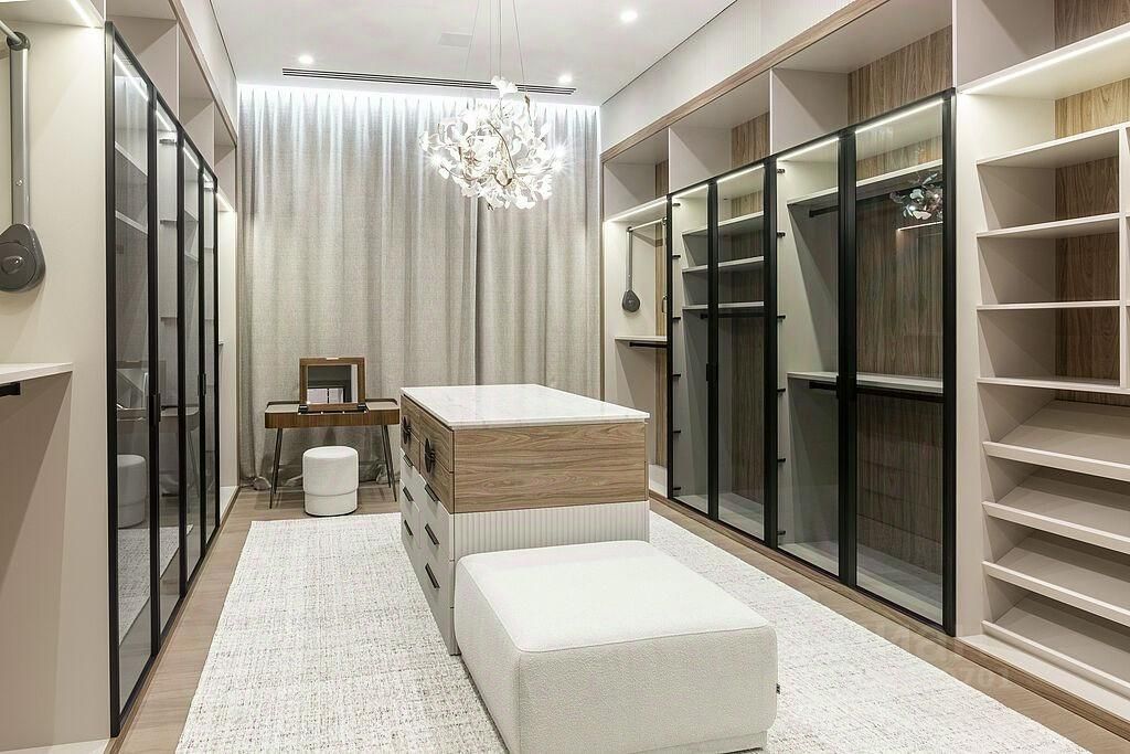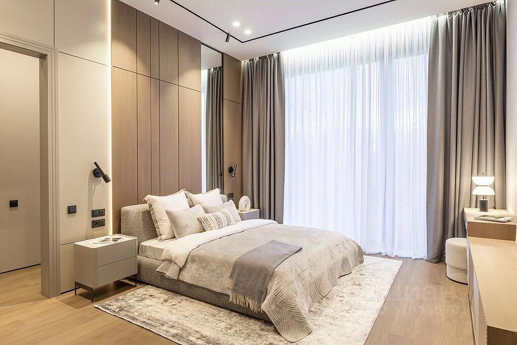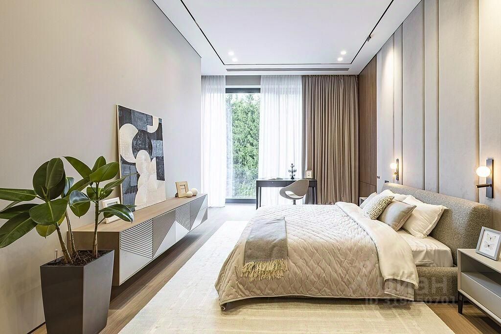В доме 6 спален, каждая из которых имеет индивидуальные гардеробные и санузлы. Всего в доме 9 санузлов. Высота потолков составляет 3,7 метра.