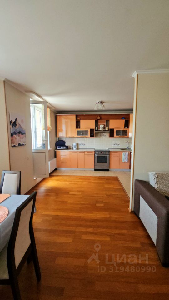 Просторная кухня-гостиная 30 квм, с выходом на видовой балкон. Кухня оснащена всей необходимой бытовой техникой (холодильник Bosch, стиральная машина Bosch, стеклокерамическая плита и духовой шкаф, кондиционер, микроволновка, электрочайник, вся необходимая посуда, гладильная доска и утюг).