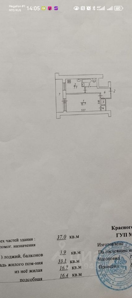 Продается 1-но комнатная квартира на 1/9К дома. Общая площадь без лоджии 33,1 кв.м , жилая площадь 16,7 кв.м., кухня 7,1 кв.м., кладовка. Общая площадь квартиры с учетом лоджии 37,0 кв.м. ПЕРЕПЛАНИРОВКИ НЕТ.