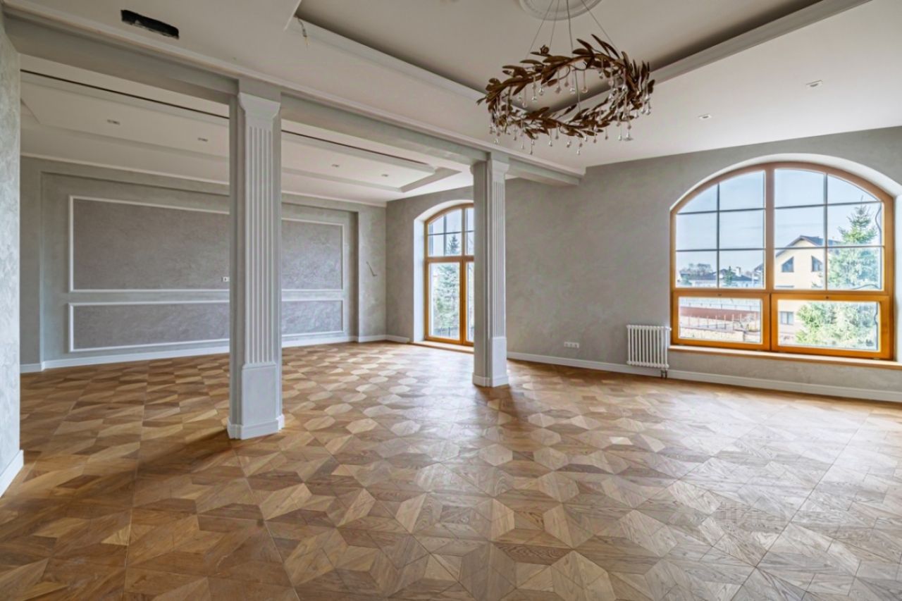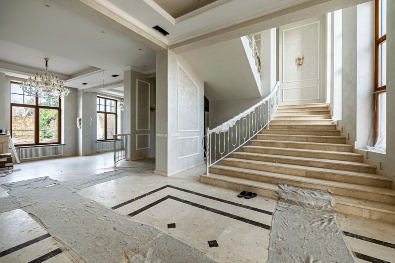 Лот 58623. Дом под ключ 1000 кв.м. на участке 19.00 соток. Количество спален: 4. Коттеджный посёлок ''Новахово'', Новорижское шоссе, 13 км от МКАД. Участок правильной прямоугольной формы, ровный, огорожен по периметру. Дорожки, парковка для автомобилей. 1 этаж: прихожая, гардеробная, кухня с подсобной комнатой, столовая-гостиная с камином и выходом на террасу, с/у, SPA-зона с сауной и комнатой отдыха, постирочная, гараж на два автомобиля.