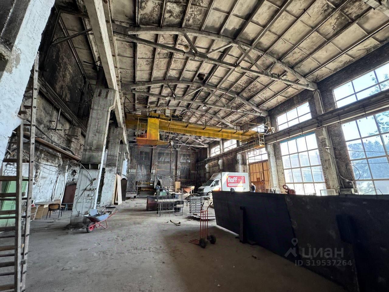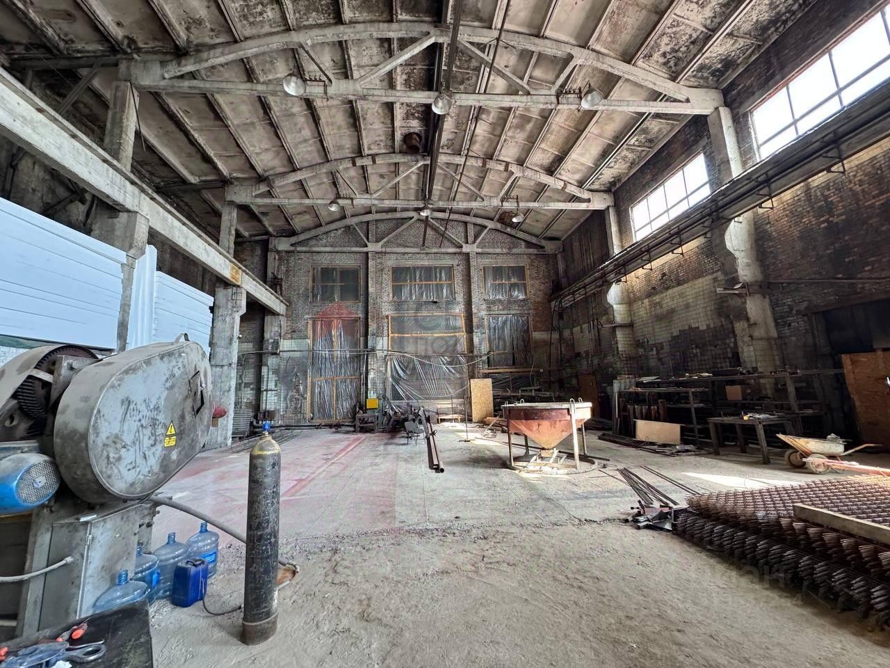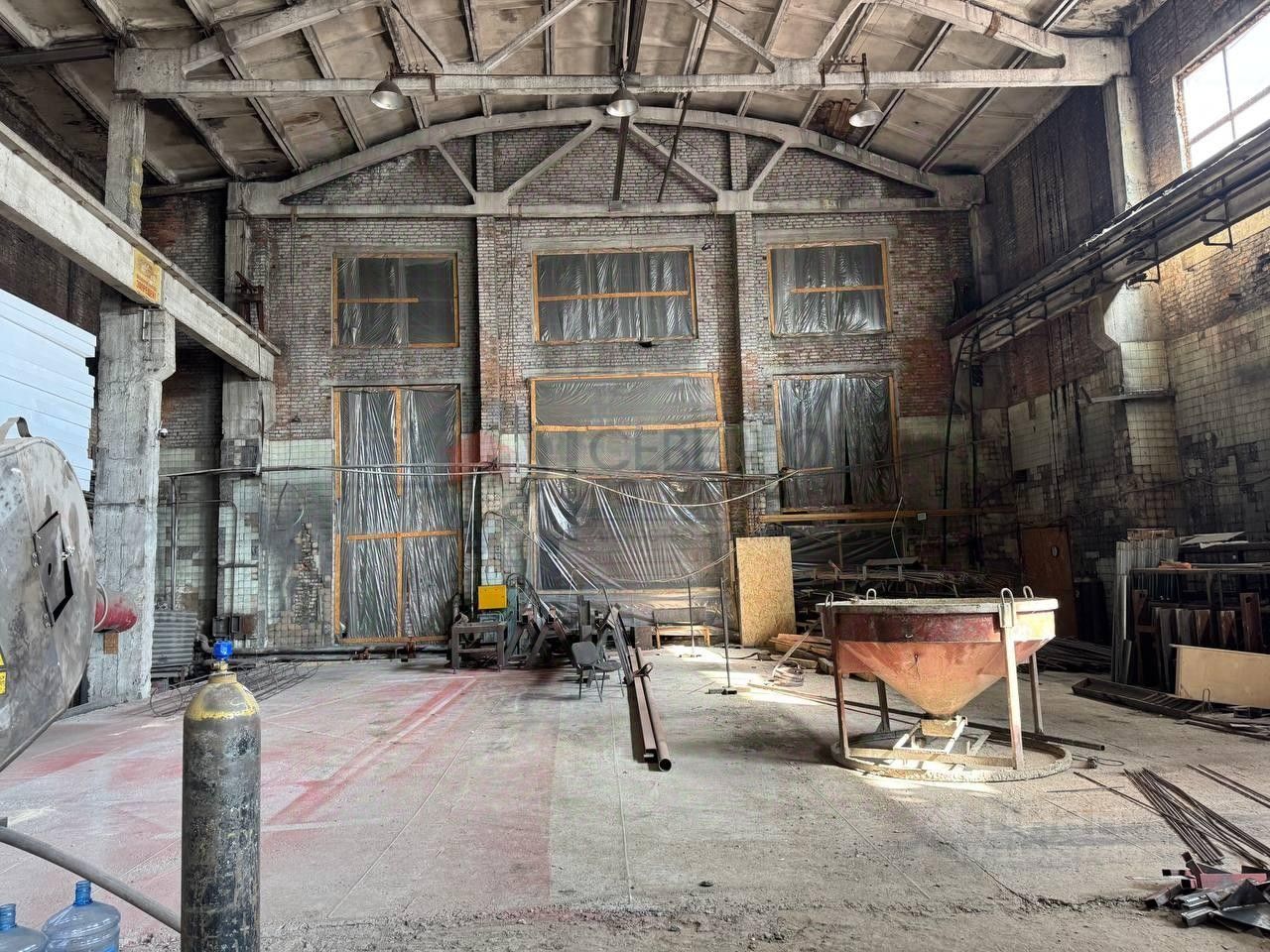 Технические характеристики: Высота потолков: 10 до 12 метров. Ширина здания:18 метров. Пол: Бетон Кран-балка 5 т. Мокрая точка