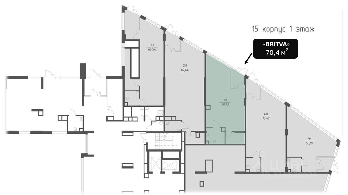 Дом сдан, корпус 15, стилобат. Отдельный вход со стороны строящегося бизнес-центра. Условный номер помещения - 3.