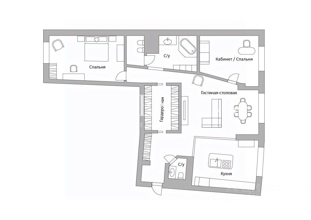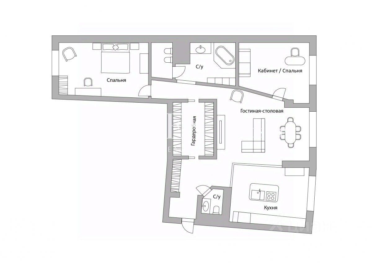 В квартире выполнена качественная отделка в классическом стиле с использованием дорогих натуральных материалов (натуральное дерево, камень). Планировочным решением предусмотрены: просторная гостиная-столовая с выделенной зоной кухни, спальня, кабинет (или вторая спальня), 2 санузла, гардеробная комната с увеличенной высотой потолков 4,10 метров.
