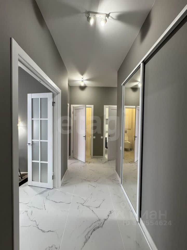 Номер в базе: 8902290. Трехкомнатная квартира площадью 72,6 м² в новом монолитном доме ЖК Бизнес-класса 2024 года постройки расположена на шестом этаже шестиэтажного жилого комплекса. Планировка выполнена по принципу евродвушки: просторная кухня 19,3 м², изолированная спальня и кабинет, который можно использовать как детскую или вторую спальню. Высота потолков 3,2 м усиливает ощущение простора, а панорамное остекление лоджии открывает вид на пруд и парковую зону.