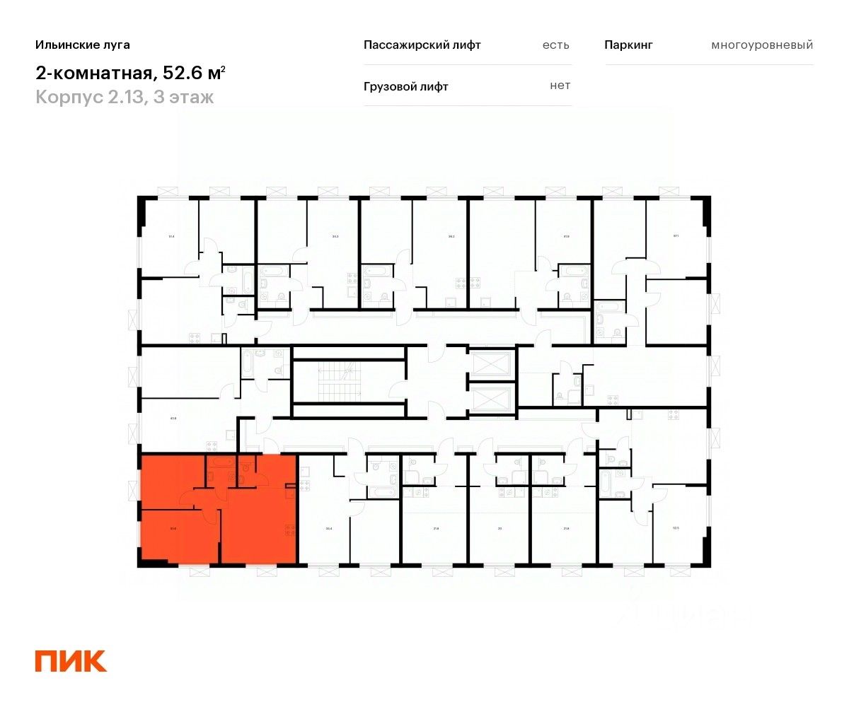 Продаётся 2-комн. квартира площадью 52,6 кв.м на 3 этаже 9 этажного дома (Корпус 2.13, Секция 3) проекта ПИК Ильинские луга. Светлый просторный подъезд на уровне земли, функциональная планировка, большие окна, c отделкой.