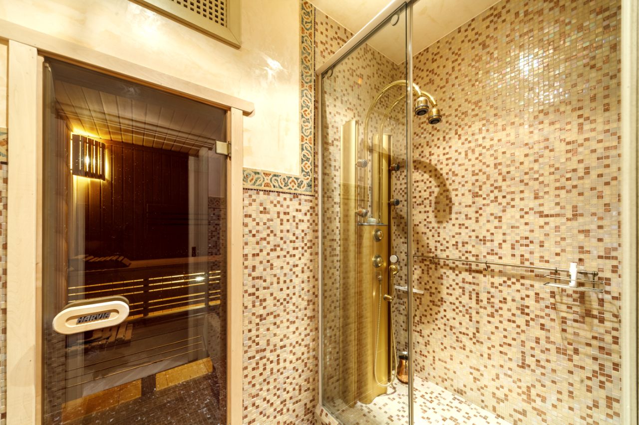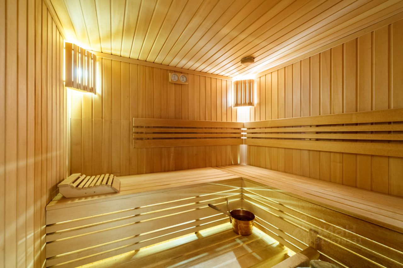 Планировка: гостиная с выделенной отдельной зоной отдыха (кабинет), 2 спальни со своими ванными комнатами, сауна, кабинет (возможно сделать ещё одну спальню), кладовая, гостевой санузел.