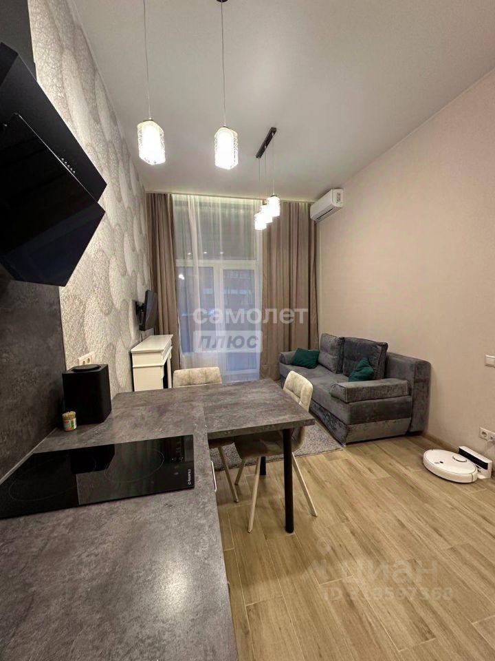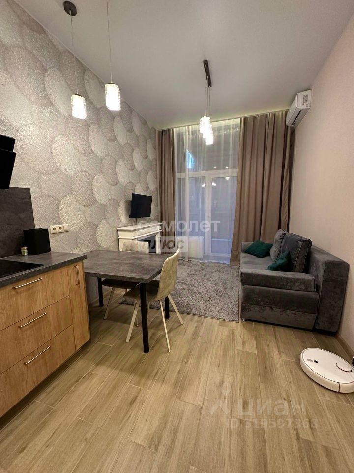 Кухня-гостиная полностью оборудована всем необходимым (плита,вытяжка, духовой шкаф,холодильник, удобный стол и стулья). Зона гостиной с мягким диваном, есть телевизор и инсталляция камина.