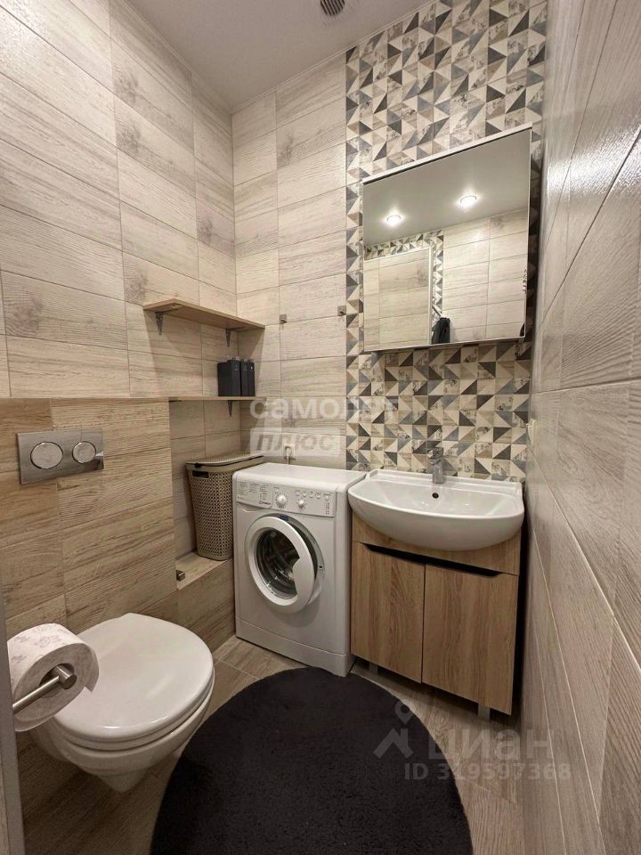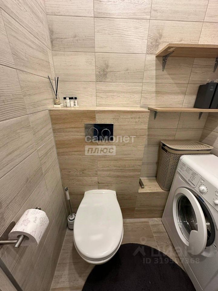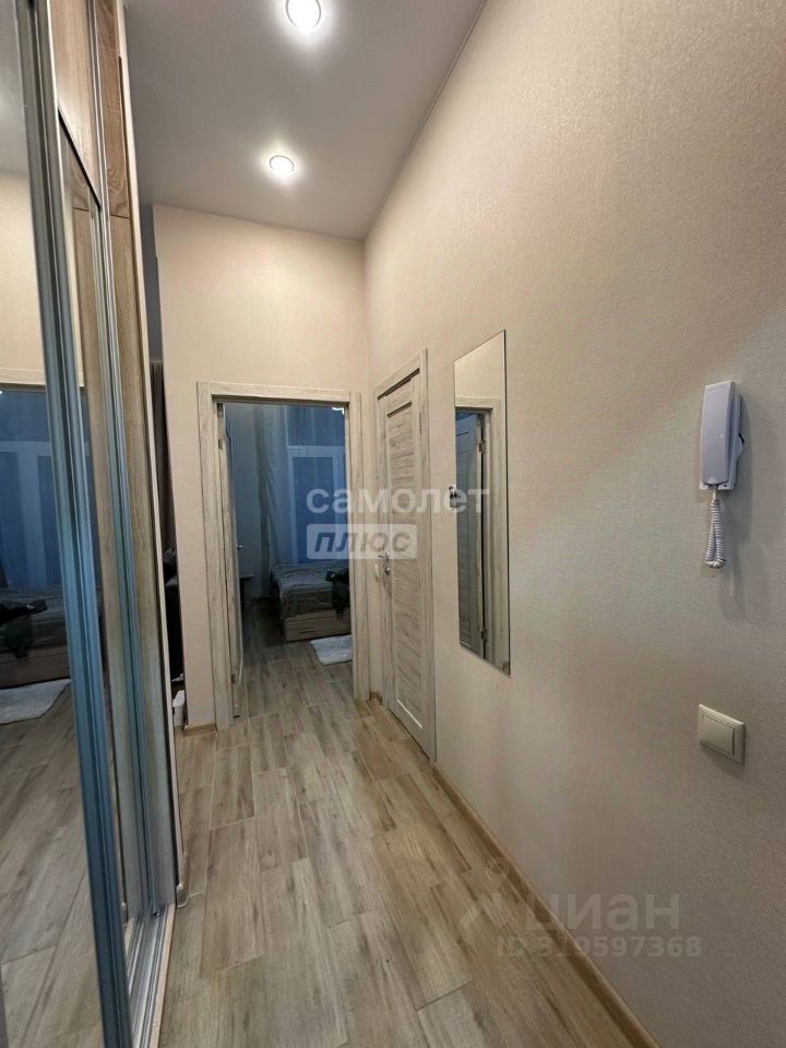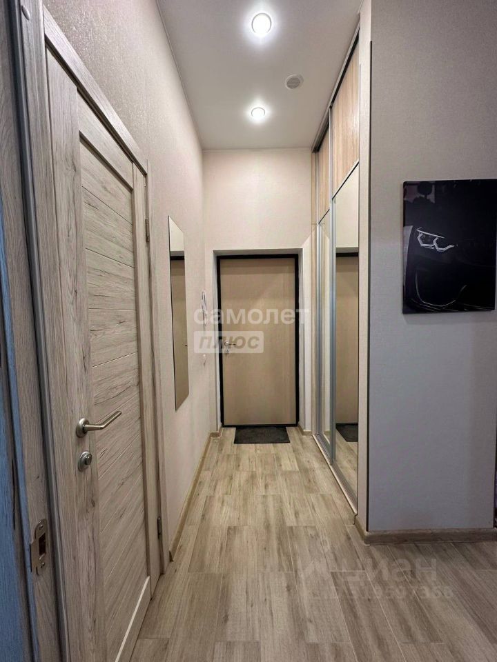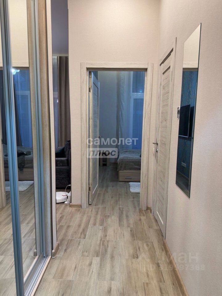 Совмещённый санузел оборудован всем необходимым. В коридоре вместительный встроенный шкаф с зеркалом для вещей.