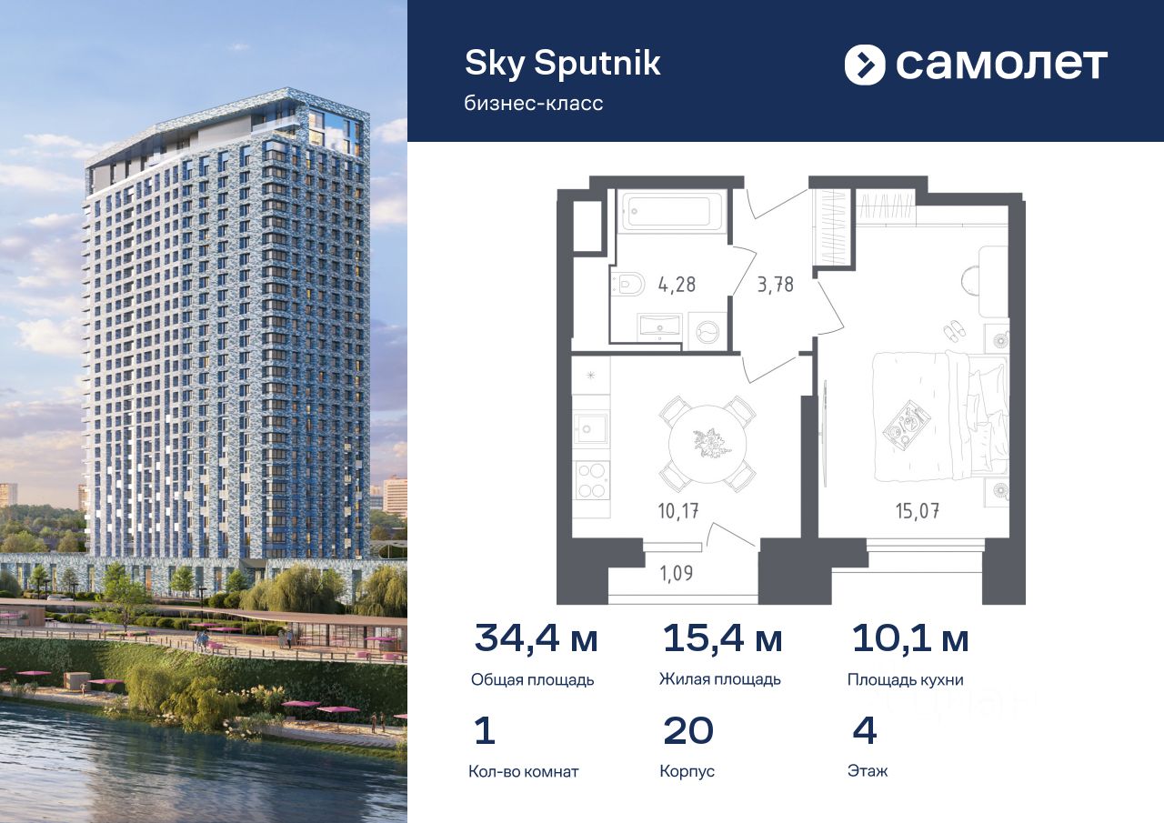 Предлагаются 1-комнатные апартаменты бизнес-класса 34,39 кв.м в корпусе 20 на 4 этаже, в Sky Sputnik Апартаменты с предчистовой отделкой. Доступность дополнительных опций уточняйте у застройщика.
