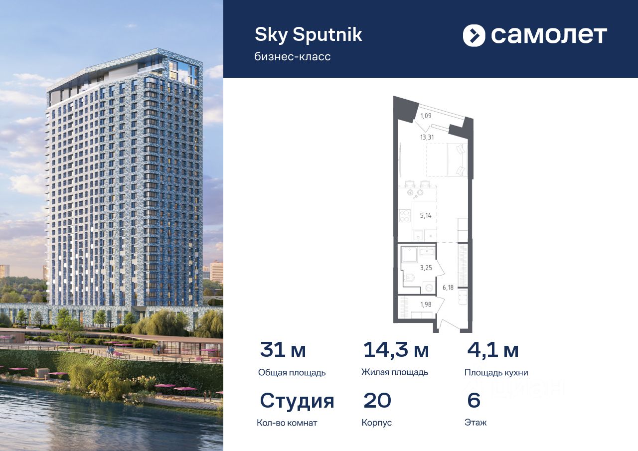 Предлагаются апартаменты студия бизнес-класса 30,95 кв.м в корпусе 20 на 6 этаже, в Sky Sputnik Апартаменты с предчистовой отделкой. Доступность дополнительных опций уточняйте у застройщика.