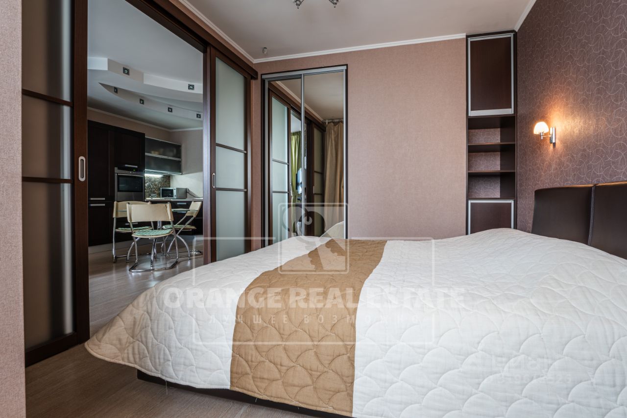 Квартира полностью меблирована и оборудована от ведущих мировых производителей: кожанный диван от Mobel&Zait, бытовая техника NEFF и Electrolux, встроенная аудиосистема (Onkyо, KEF), кондиционеры Samsung. На кухне (Elt) - встренный холодильник, духовой шкаф, вытяжка. Двери марки ''Union''. Санузел совмещенный, с ванной и стиральной машиной.