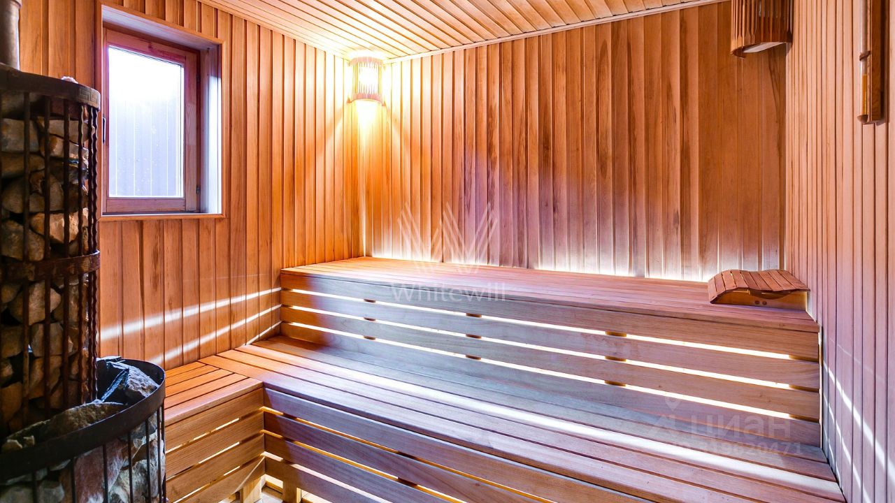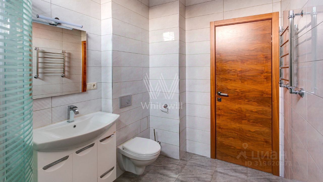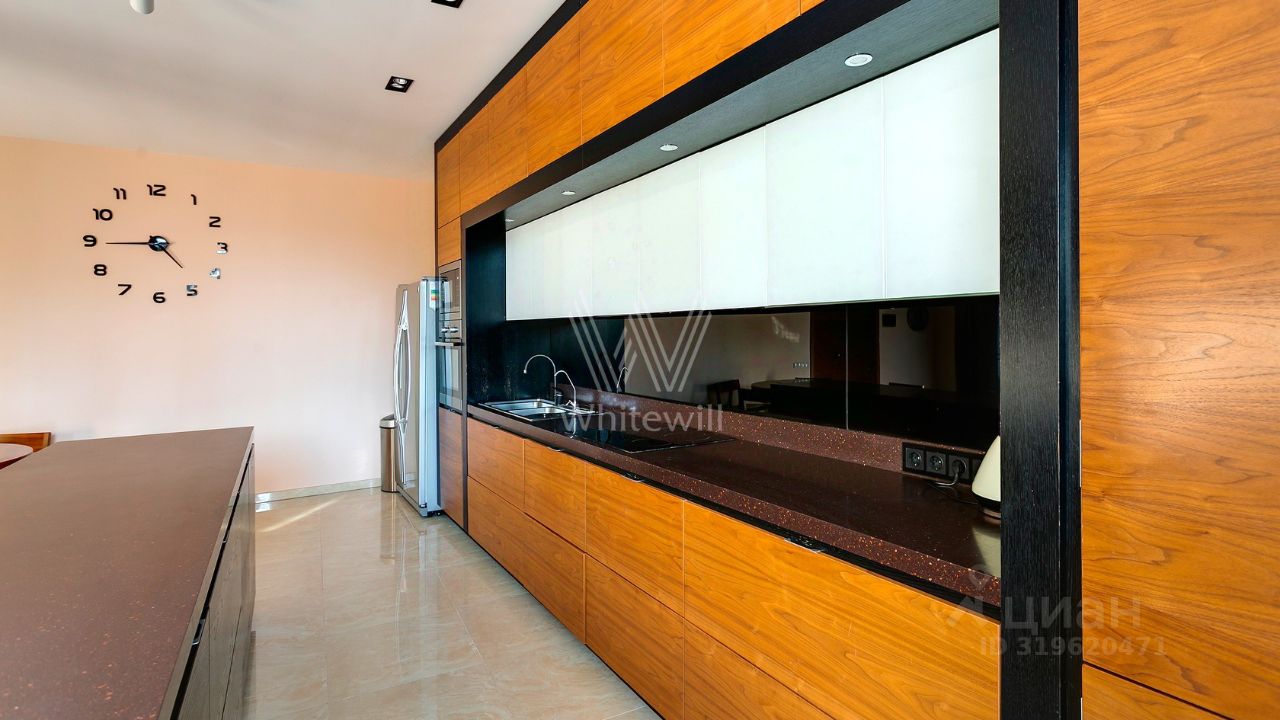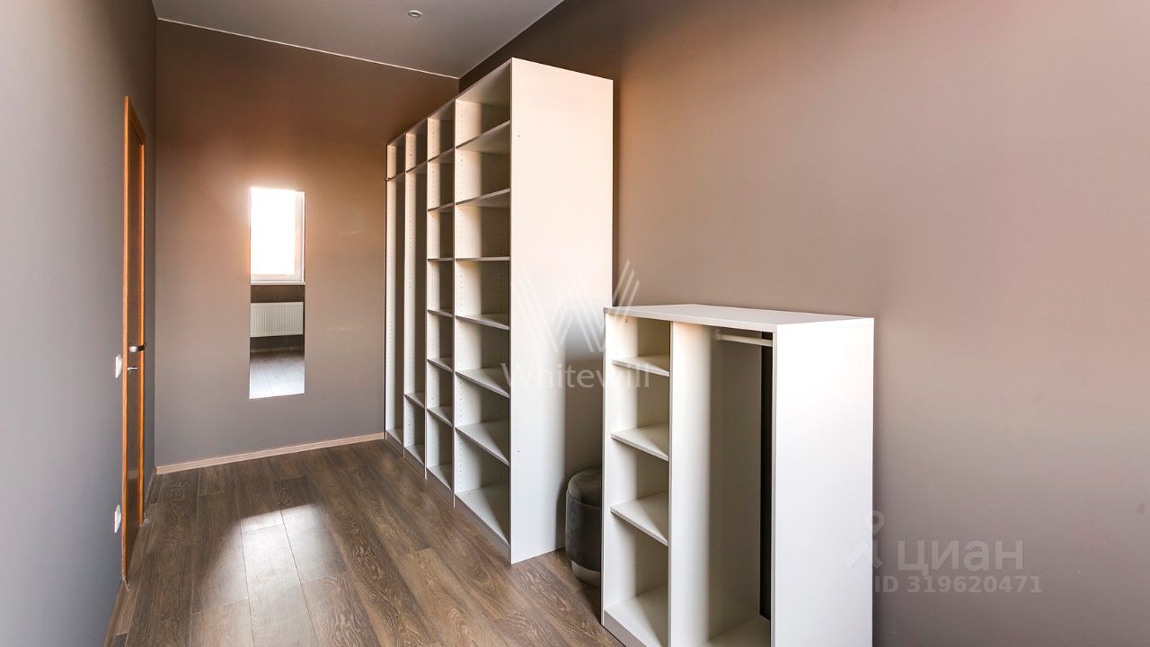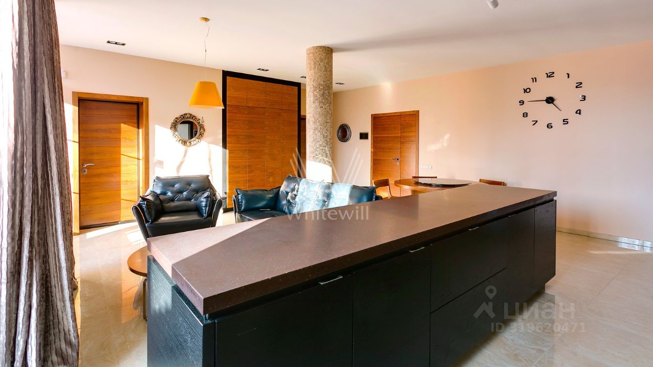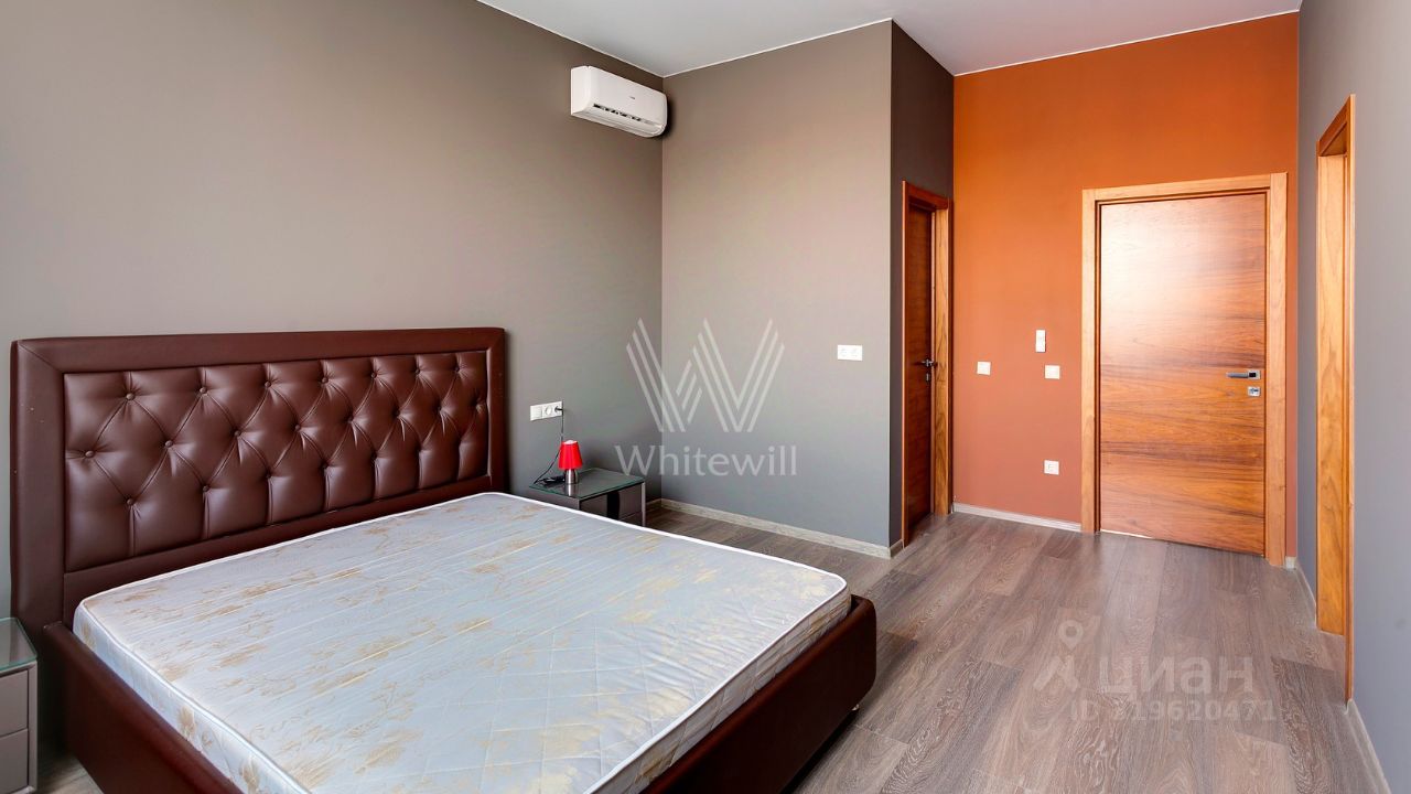 ID 10 107. Ольгино. Загородный дом площадью 400 м² расположен на участке 10 соток. Фасад выполнен из красного клинкерного кирпича, окна украшены белыми наличниками. Современный интерьер выполнен в теплой палитре оттенков, создающих атмосферу уюта. В таунхаусе спланировали 5 спален, гостиную-столовую-кухню, бильярдную с зоной отдыха. На территории предусмотрены гараж на 2 машины, паркинг на 6 машин, баня с 2 гостевыми спальнями и зона барбекю. На участке выполнен ландшафтный дизайн, вымощены дорожки.