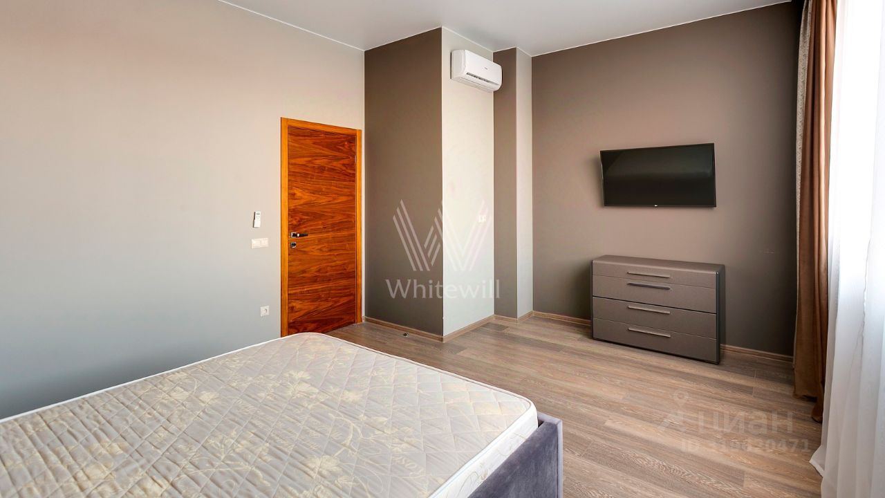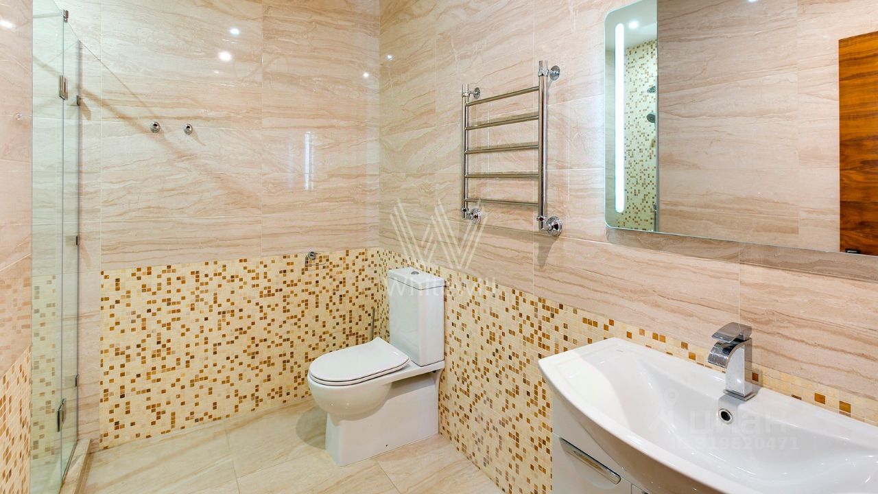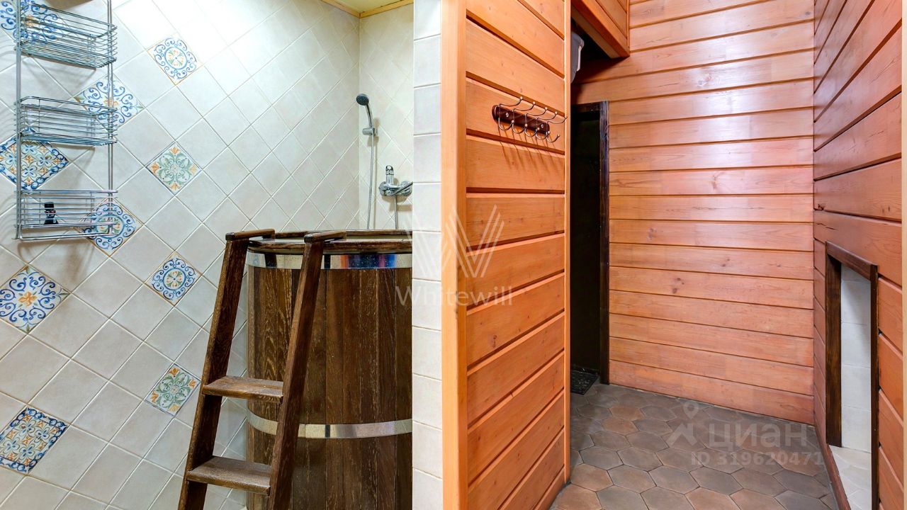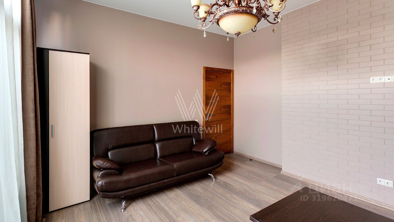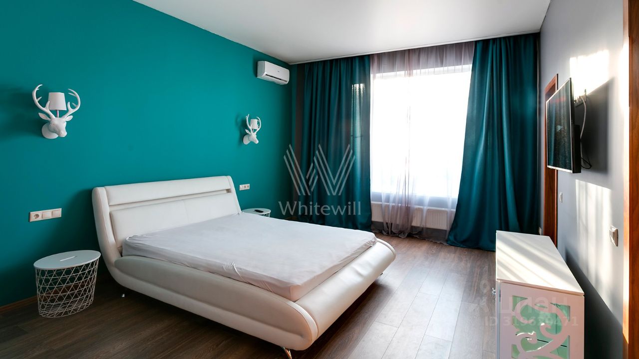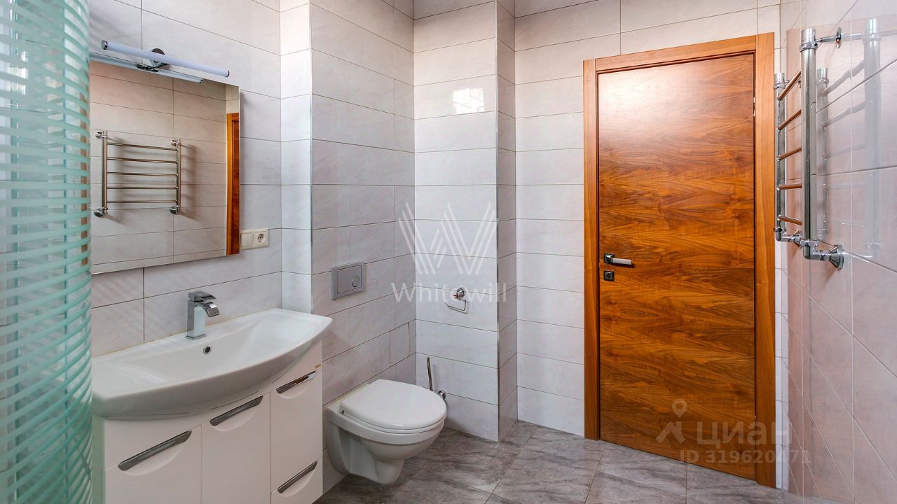 ID 10 107. Ольгино. Загородный дом площадью 400 м² расположен на участке 10 соток. Фасад выполнен из красного клинкерного кирпича, окна украшены белыми наличниками. Современный интерьер выполнен в теплой палитре оттенков, создающих атмосферу уюта. В таунхаусе спланировали 5 спален, гостиную-столовую-кухню, бильярдную с зоной отдыха. На территории предусмотрены гараж на 2 машины, паркинг на 6 машин, баня с 2 гостевыми спальнями и зона барбекю. На участке выполнен ландшафтный дизайн, вымощены дорожки.