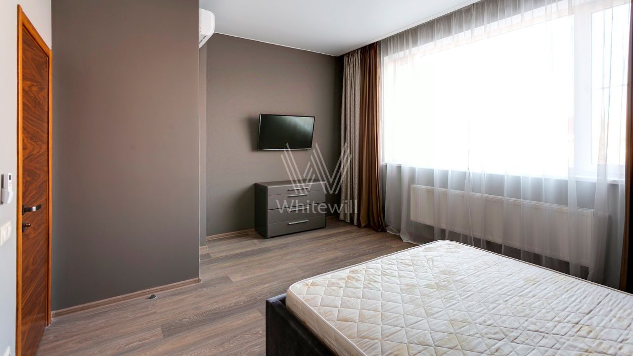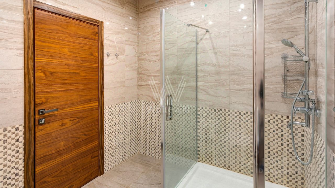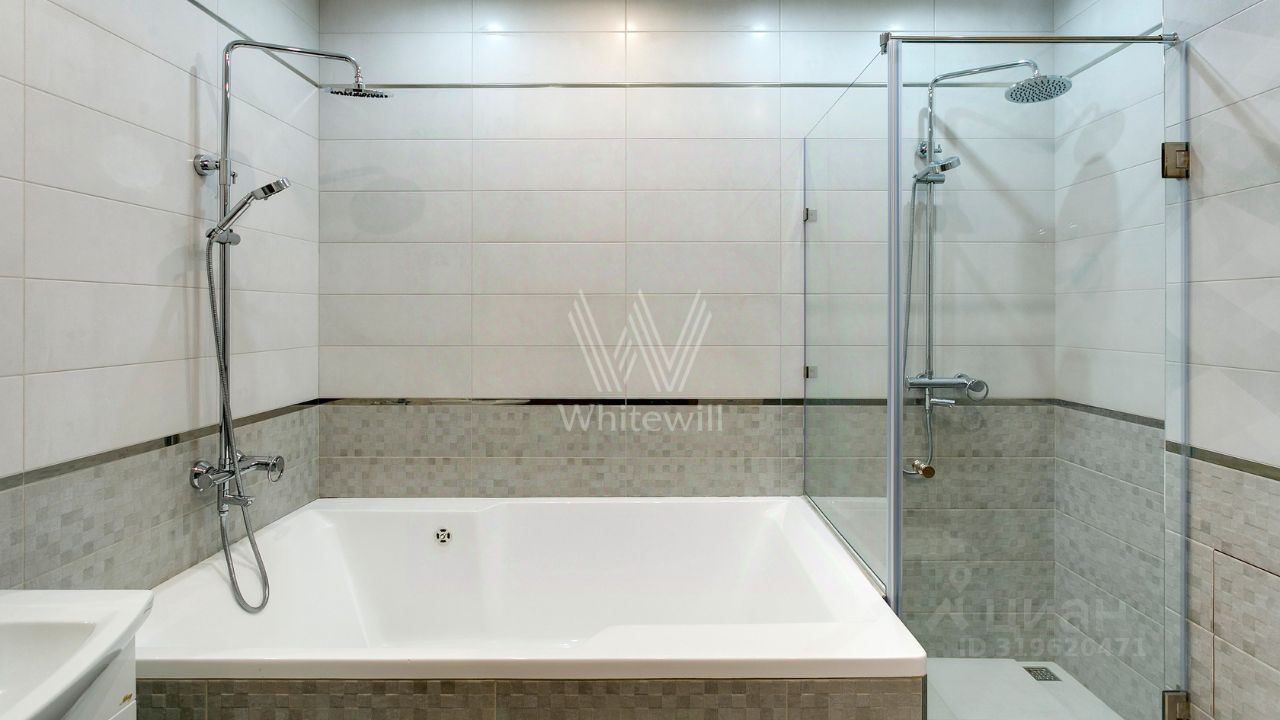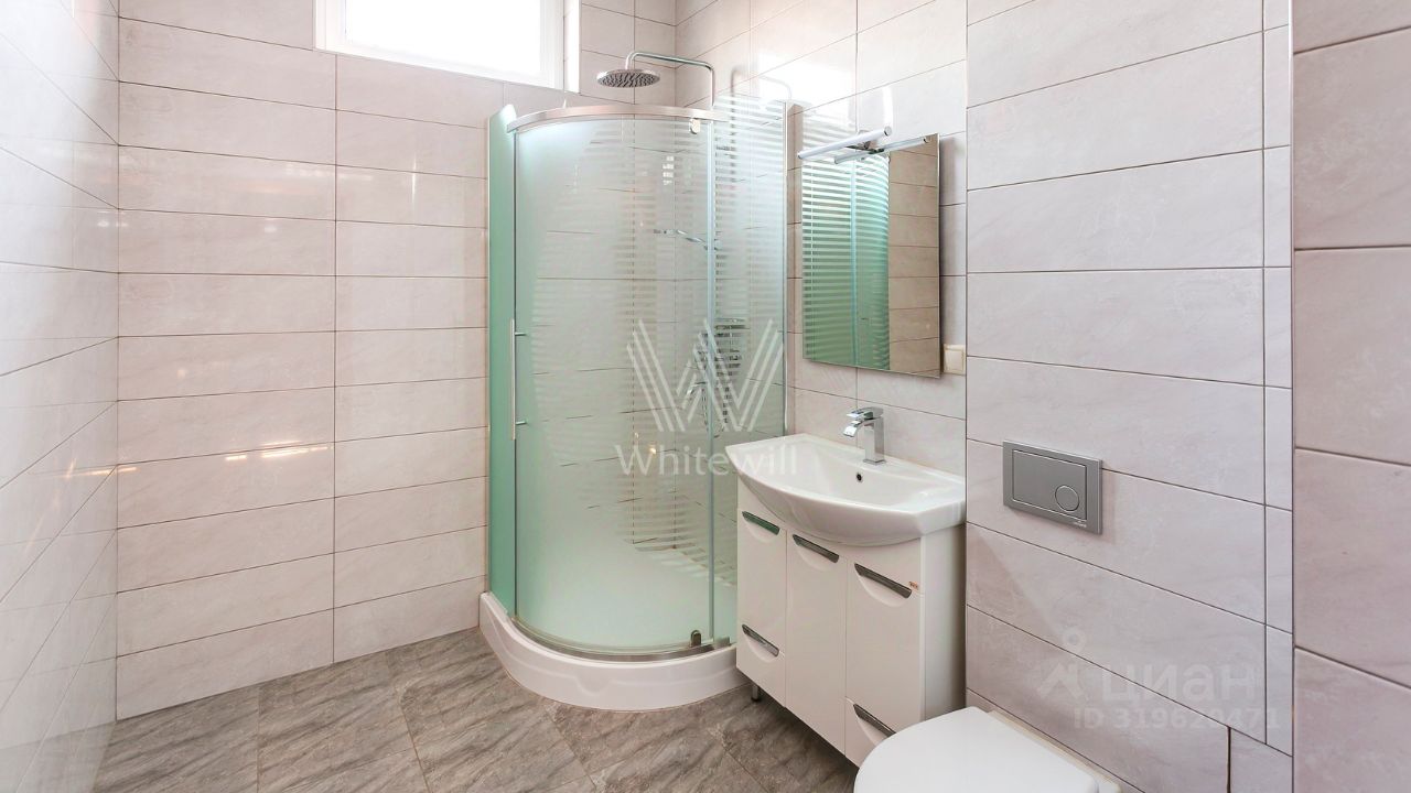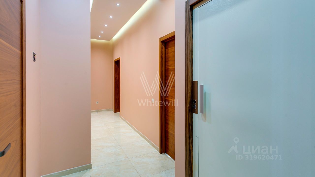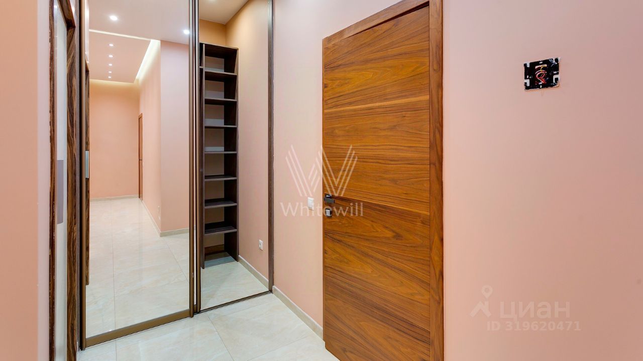ID 10 107. Ольгино. Загородный дом площадью 400 м² расположен на участке 10 соток. Фасад выполнен из красного клинкерного кирпича, окна украшены белыми наличниками. Современный интерьер выполнен в теплой палитре оттенков, создающих атмосферу уюта. В таунхаусе спланировали 5 спален, гостиную-столовую-кухню, бильярдную с зоной отдыха. На территории предусмотрены гараж на 2 машины, паркинг на 6 машин, баня с 2 гостевыми спальнями и зона барбекю. На участке выполнен ландшафтный дизайн, вымощены дорожки.