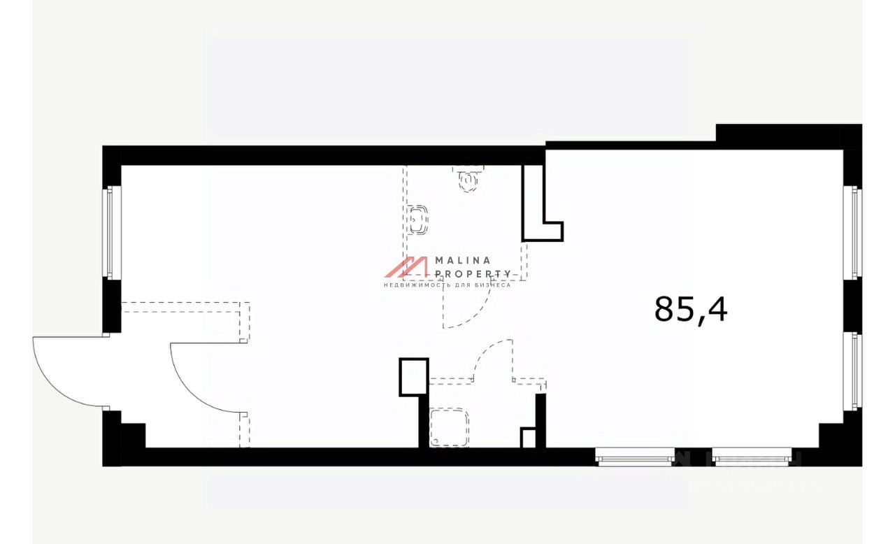 Помещение площадью 85,4 м2 располагается на 1 этаже, имеет открытую планировку, высоту потолка более 3 метров, витринное окно по фасаду. Вход в помещение расположен между подъездом и входом в пвз ''Ozon''