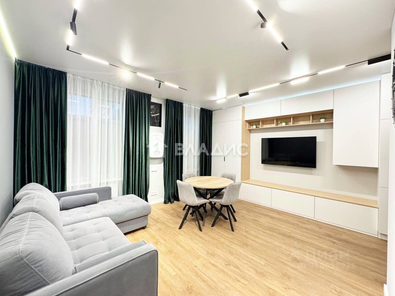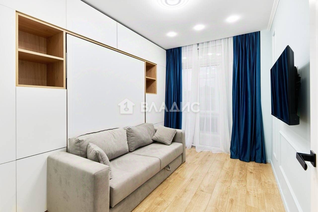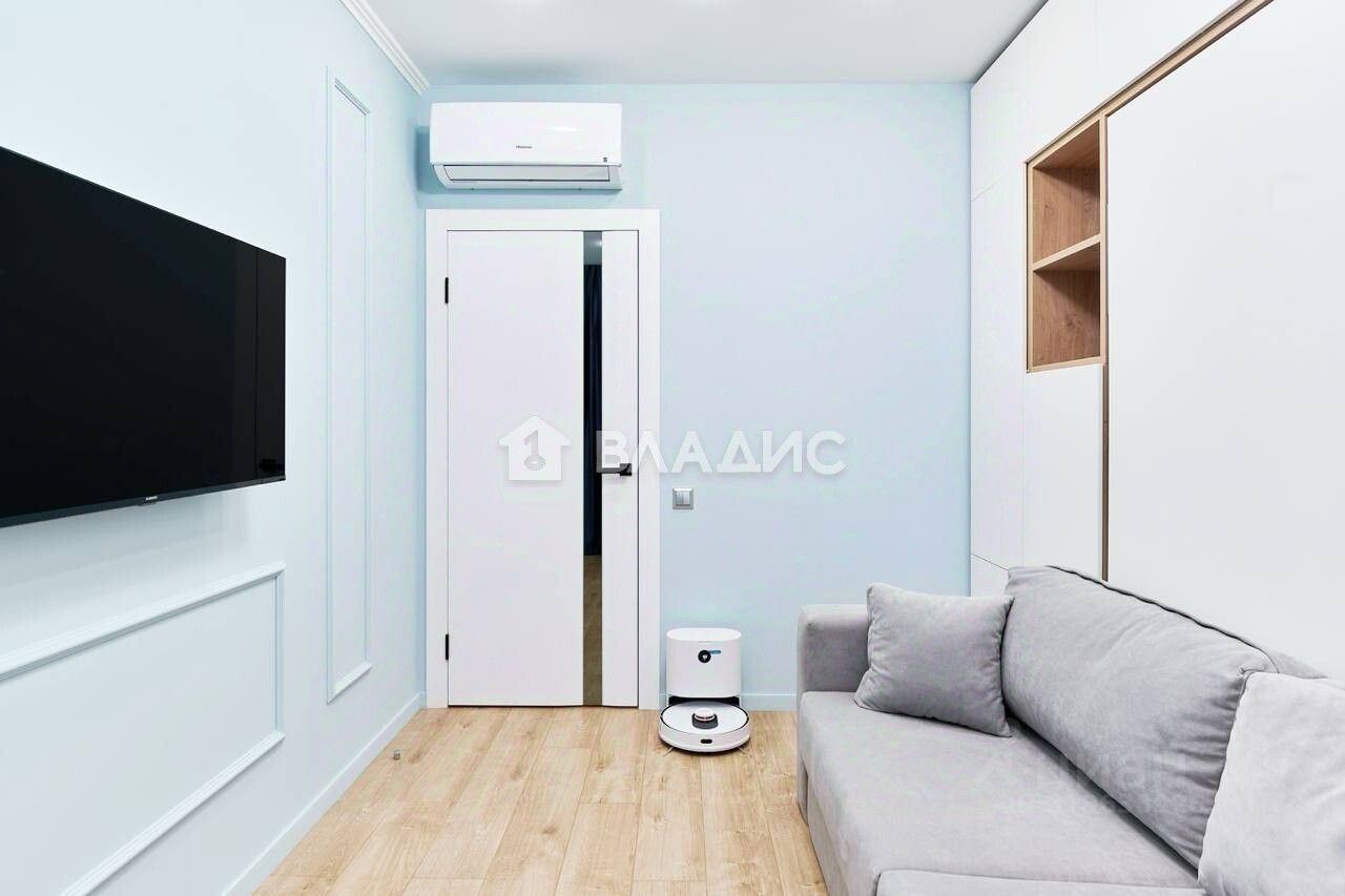 Мебель и техника: - Двуспальная кровать-трансформер с системой хранения - Диван-кровать - Два просторных шкафа - Бризер, сплит-система - Робот-пылесос с влажной уборкой Roidmi Eve Plus - Два больших телевизора - Балкон оборудован под кабинет: отдельный шкаф и стол, переходящий в подоконник, инфракрасный обогреватель