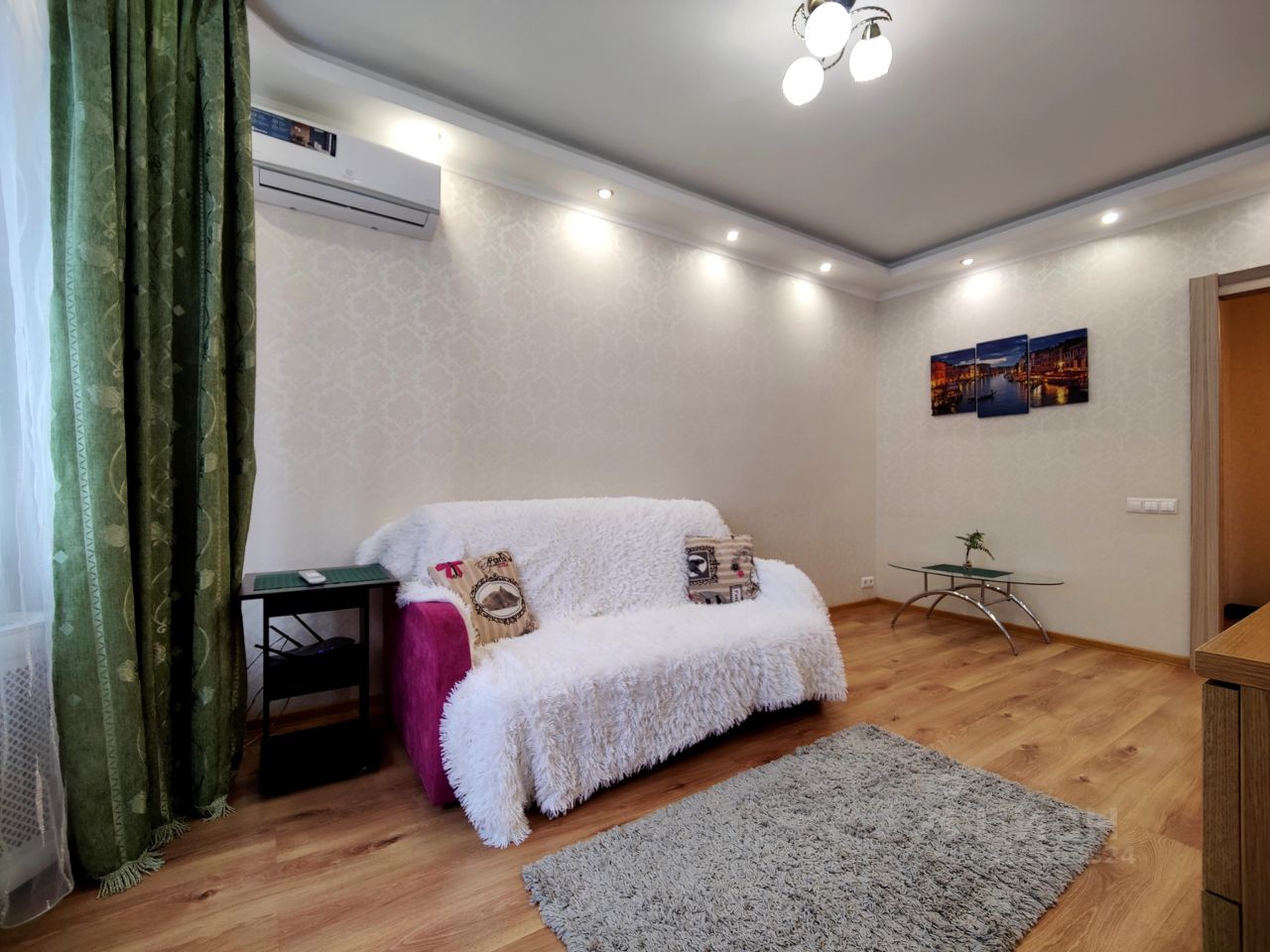 Кондиционер. Квартира в монолитно-кирпичном доме с подземным паркингом и охраняемой территорией. Павшинская пойма, 10 минут пешком метро Мякинино. Уютная квартира с евро-ремонтом. Многоуровневое освещение. Встроенный кухонный гарнитур. ЖК телевизор. Стиральная машина, двухкамерный холодильник. В комнате двуспальный раскладной диван, комод, журнальный столик. Оборудованная гардеробная комната. Санузел в плитке до потолка с душкабиной. Полы ламинат + плитка. Большая застекленная лоджия. Консьерж. Охраняемая огороженная терриритория.