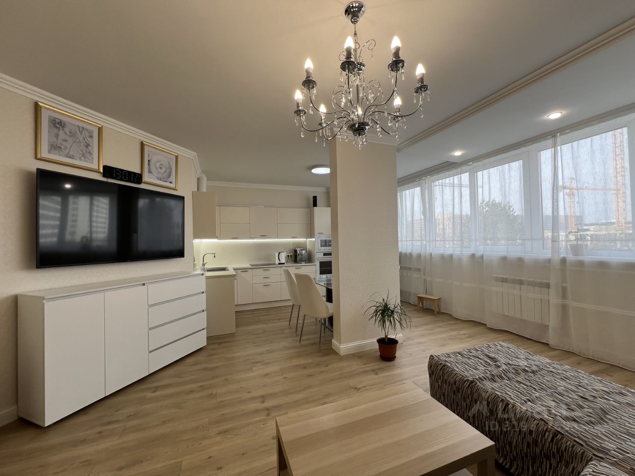 Квартира выполнена в тёплых постельных тонах, что усиливает приятные ощущения нахождения в ней.