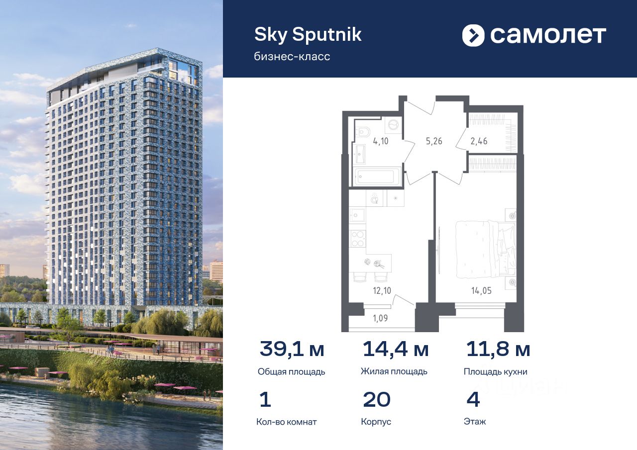 Предлагаются 1-комнатные апартаменты бизнес-класса 39,06 кв.м в корпусе 20 на 4 этаже, в Sky Sputnik Апартаменты с предчистовой отделкой. Доступность дополнительных опций уточняйте у застройщика.