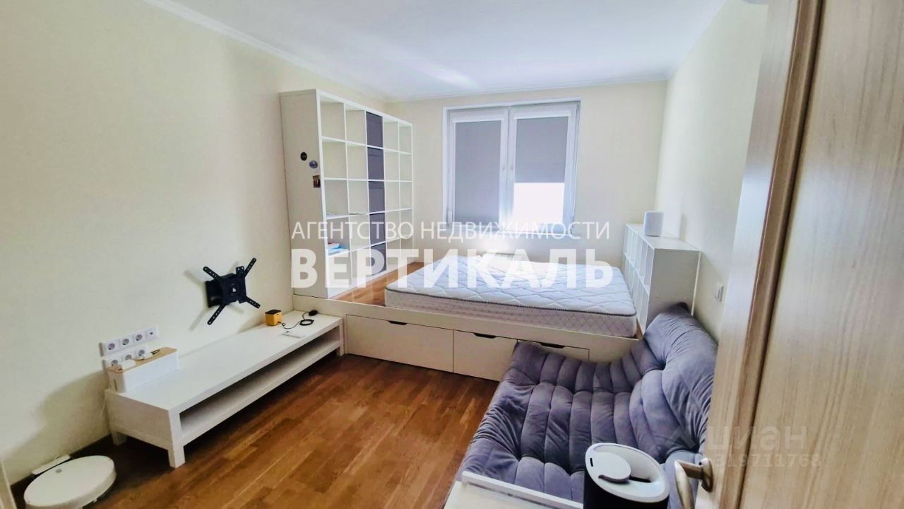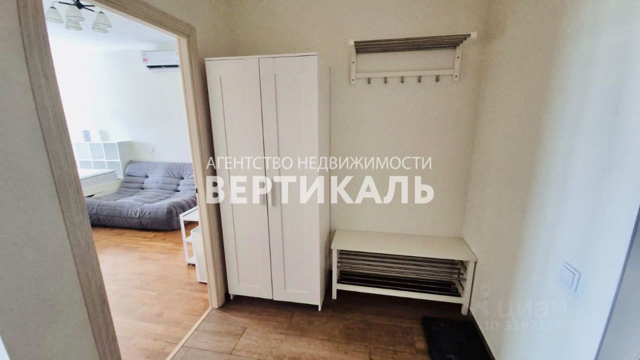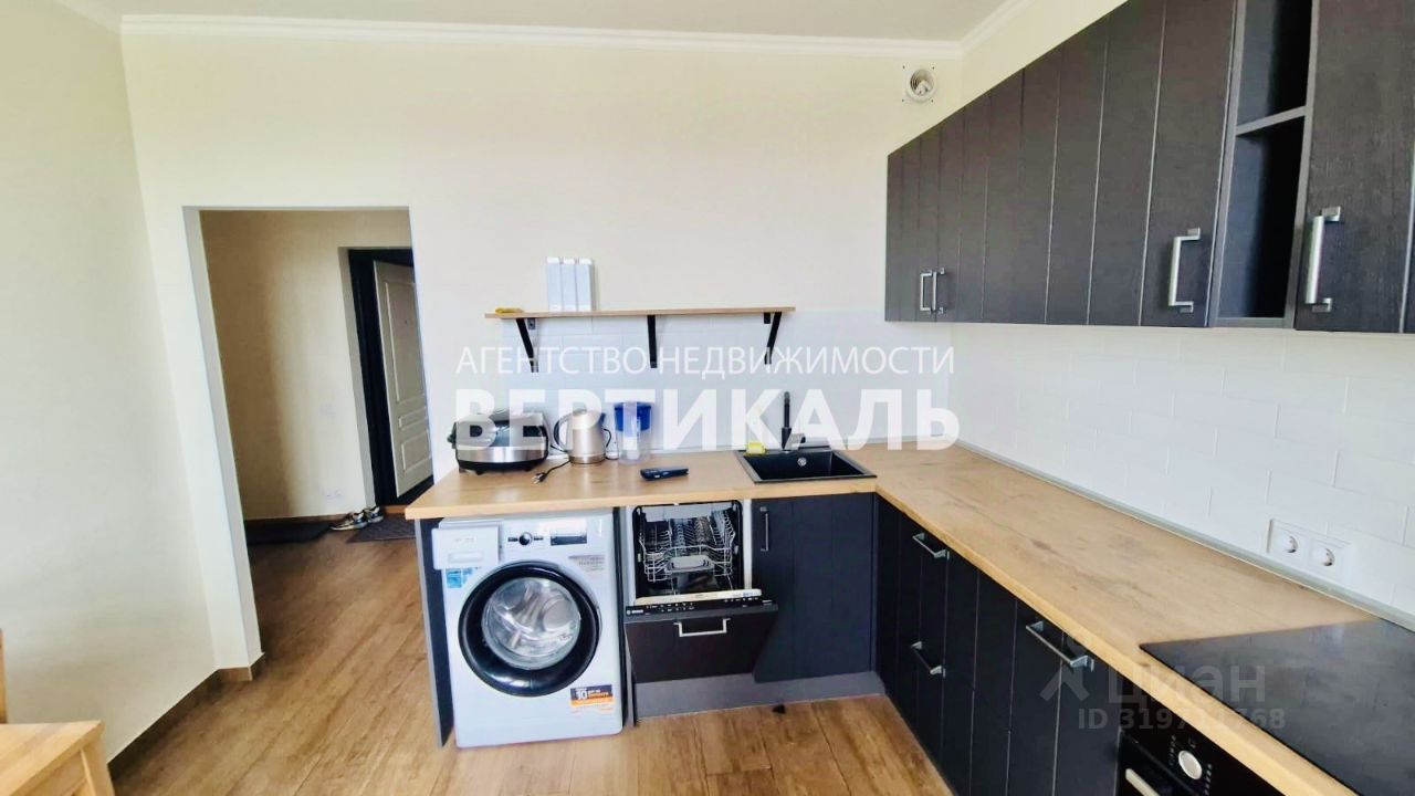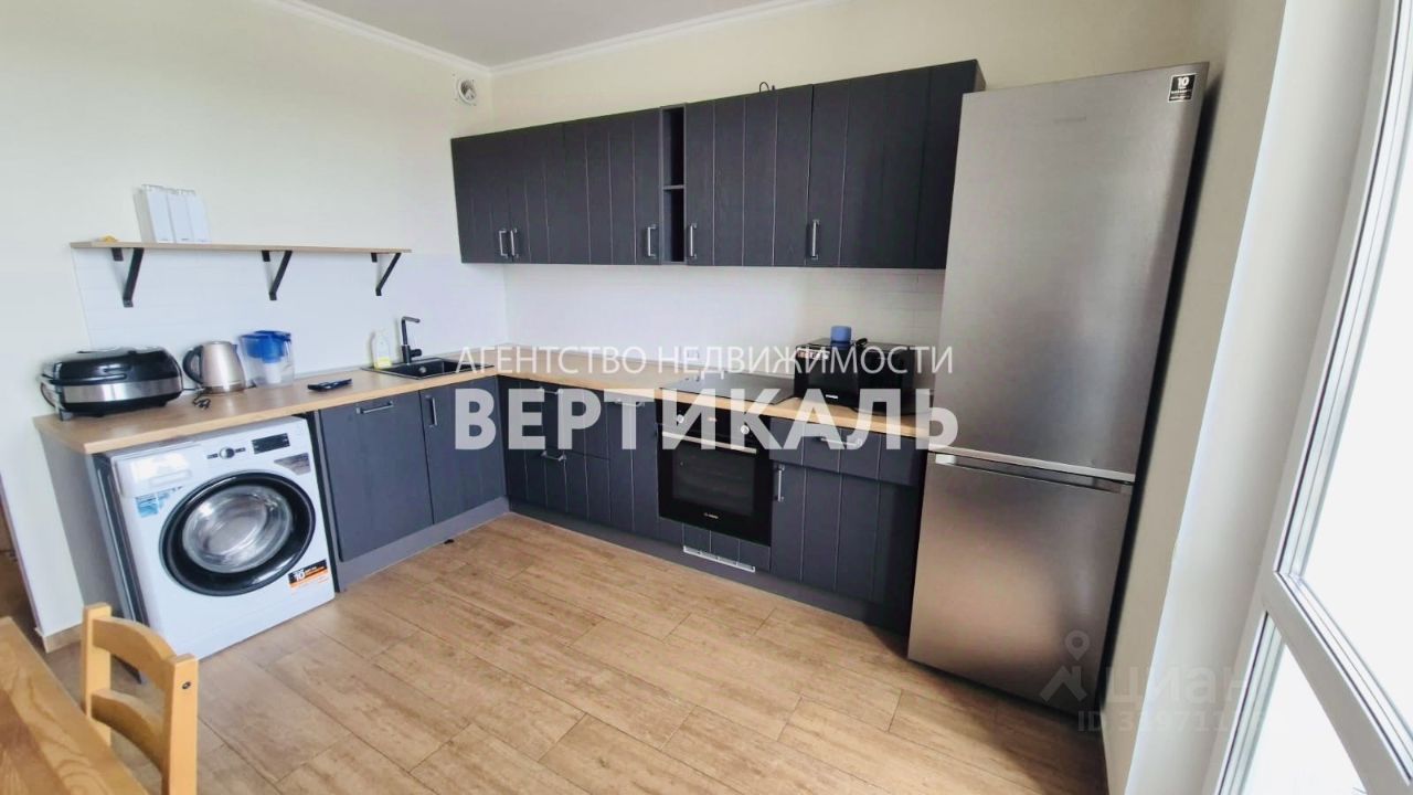 Полностью меблирована, есть всё необходимое для комфортного проживания — холодильник, стиральная машина, плита, робот пылесос, Алиса, можно подключить шторы и подсветку на кухне, чтобы от нее работали. Большая гардеробная. Окна выходят на ОКЕЙ.