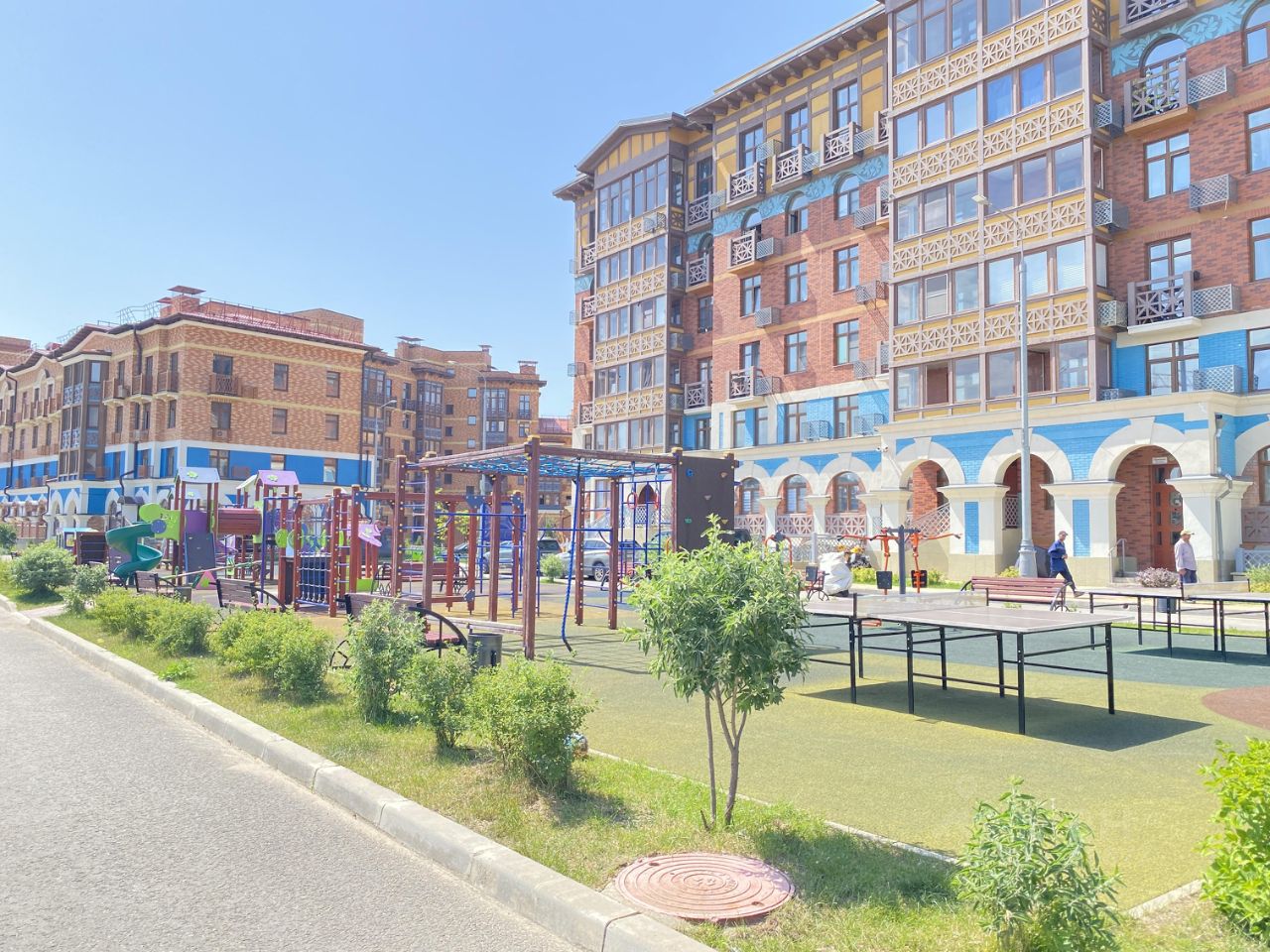 Инфраструктура комплекса: •Торговые галереи на первых этажах (фермерские продукты, кафе) •Школа на 550 мест и детсад на 310 мест всё на территории •Парк-центр сердце микрорайона с зонами отдыха
