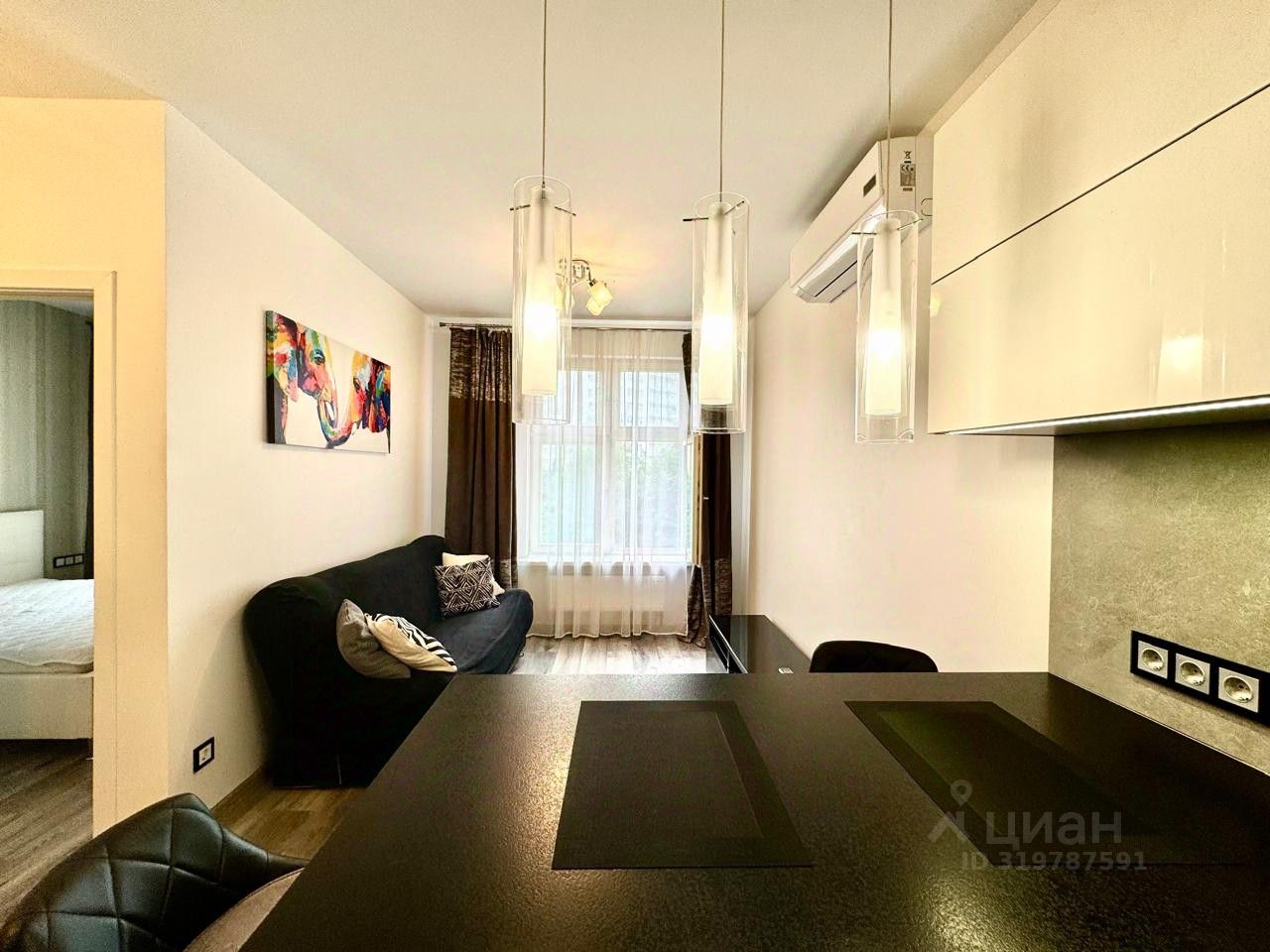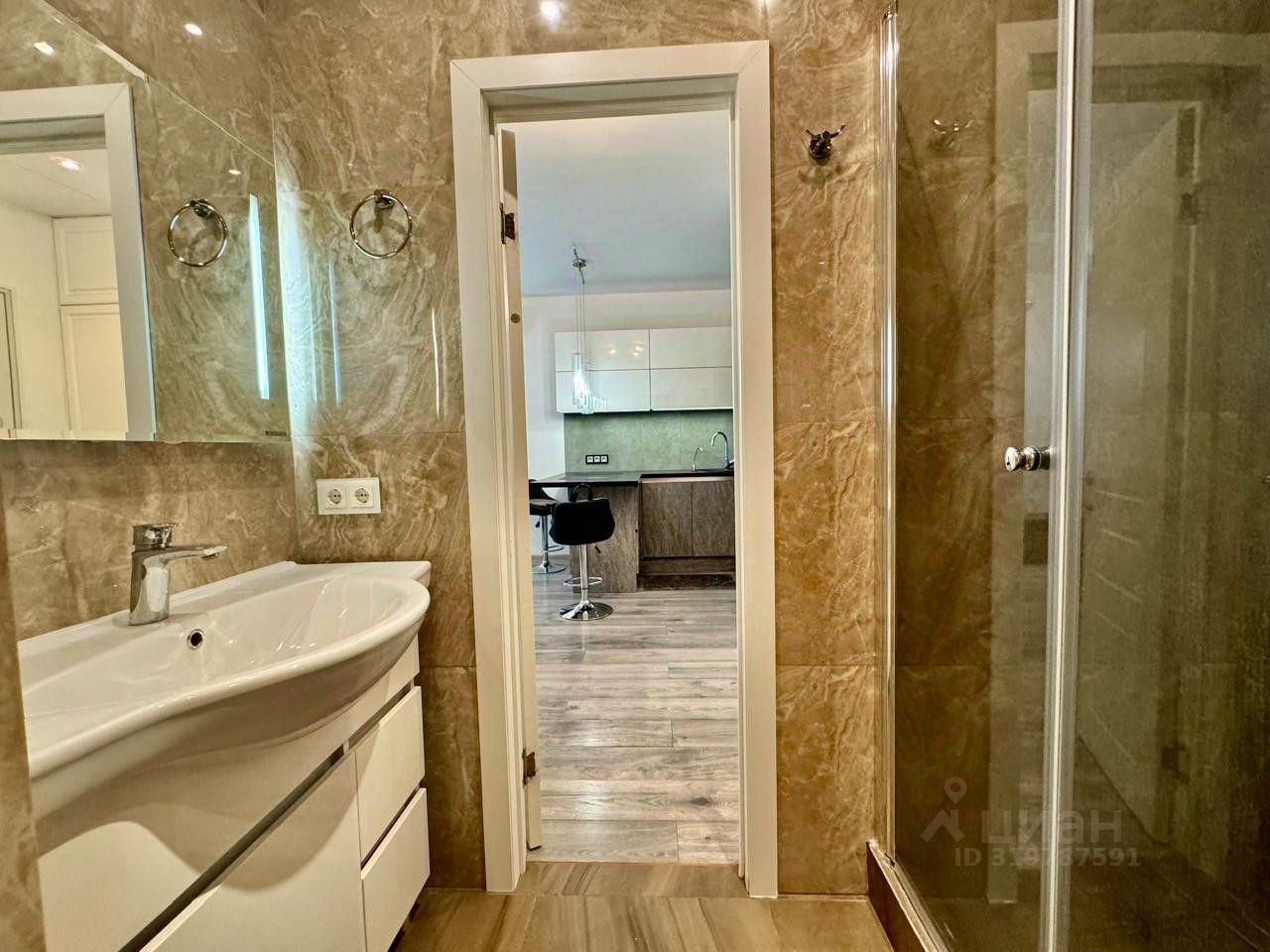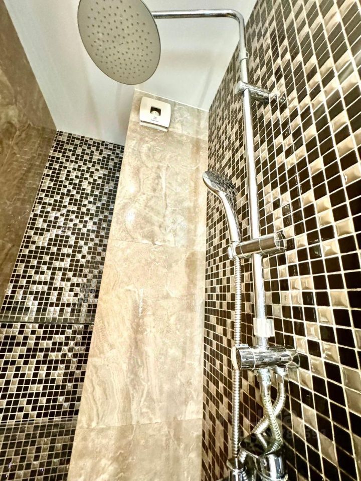 КВАРТИРА: В квартире дизайнерский ремонт. В комнате двухспальная кровать, прикроватная тумба, большой встроенный шкаф. Современная большая кухня оборудована холодильником, варочной панелью, вытяжкой, посудомоечной машиной. В совмещенном санузле установлена душевая кабина в строительном исполнении.