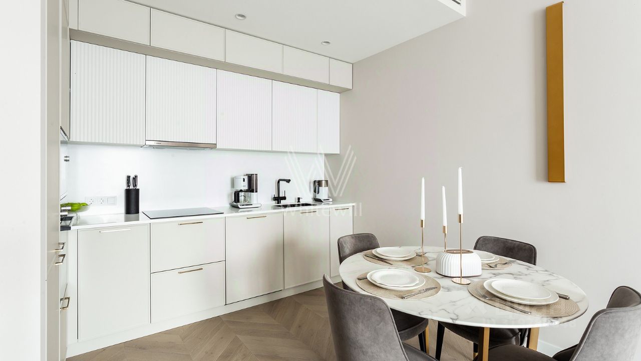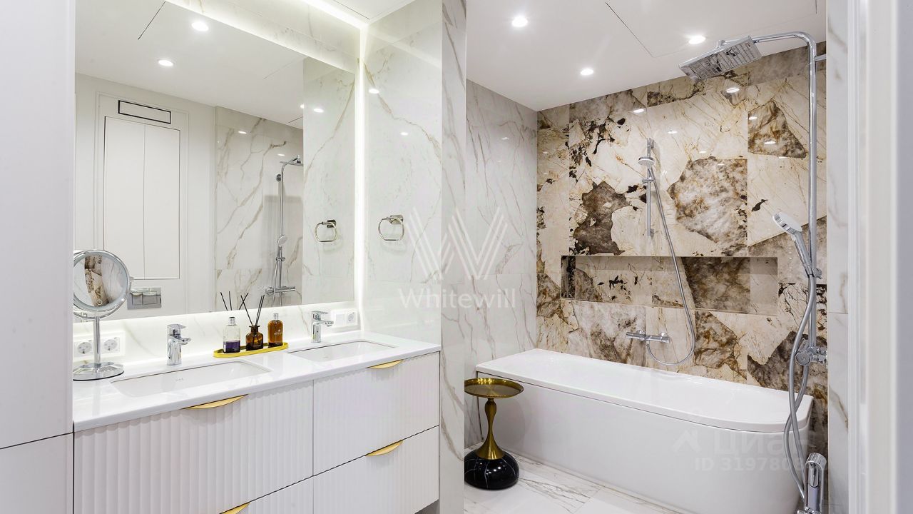 В квартире есть вся необходимая мебель, а кухня с итальянской мебелью оснащена техникой Bosch. Санузлы оборудованы немецкой сантехникой, включая душевую нишу с потолочным душем Hansgrohe, полотенцесушитель, стиральную и сушильную машины Bosch. Из современных систем установлены: умный дом, подогрев полов, вентиляция Mitsubishi, защита от протечек, регулируемое отопление и круглосуточная подача горячей воды.