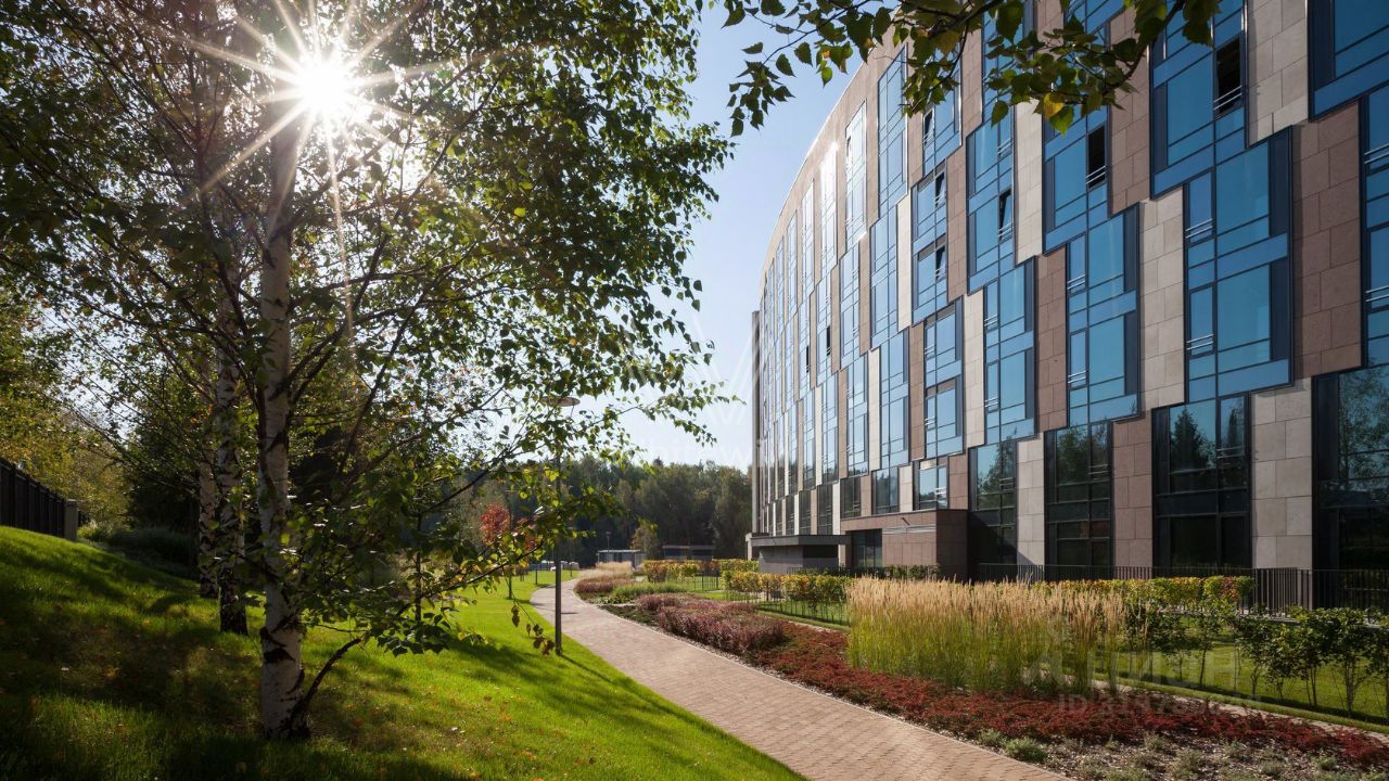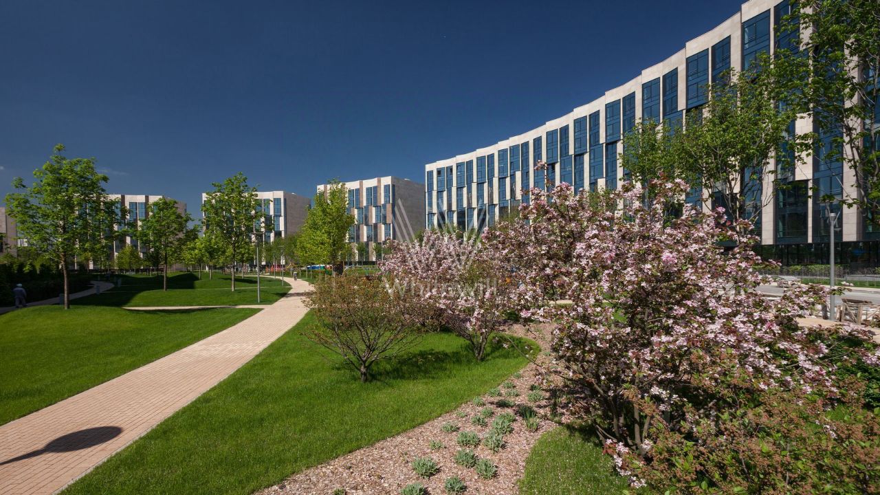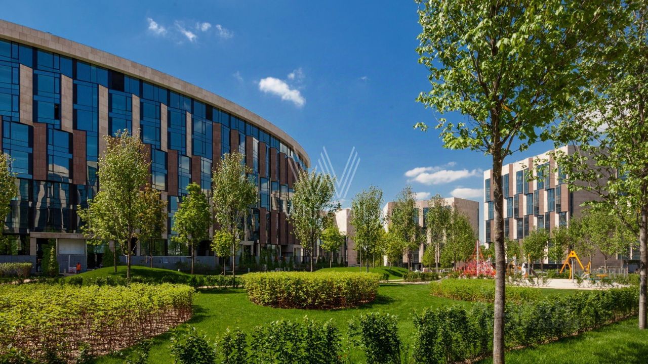 Главное о доме. Клубный квартал премиум-класса из шести домов высотой семьдевять этажей на приватной территории с английским парком, каскадными лужайками и прогулочными бульварами. Архитектура с большим остеклением и камнем в отделке создаёт спокойный ритм фасадов, квартиры получают много света и видов на зелень. Под землёй расположен охраняемый паркинг большого объёма с прямым доступом в лобби. Внутри квартала работают сервисы для повседневной жизни и детская инфраструктура. Проект сдан и обжит, инженерия и благоустройство дают ощущение городского курорта: из дома — в парк, к воде и обратно в тишину своего сада.