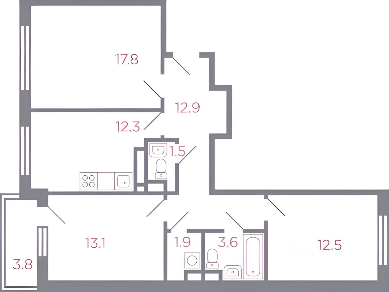 Свободная продажа, быстрый выход на сделку! Продаётся светлая, тёплая и уютная евротрёшка - две изолированные комнаты (17+12м) и просторная кухня-гостиная (27м). На кухне панорамные окна в пол и выход на лоджию 4 кв.м. Установлен внутрипольный радиатор. Два санузла - 4м и 2м. Постирочная 2м, в которой можно установить систему хранения.