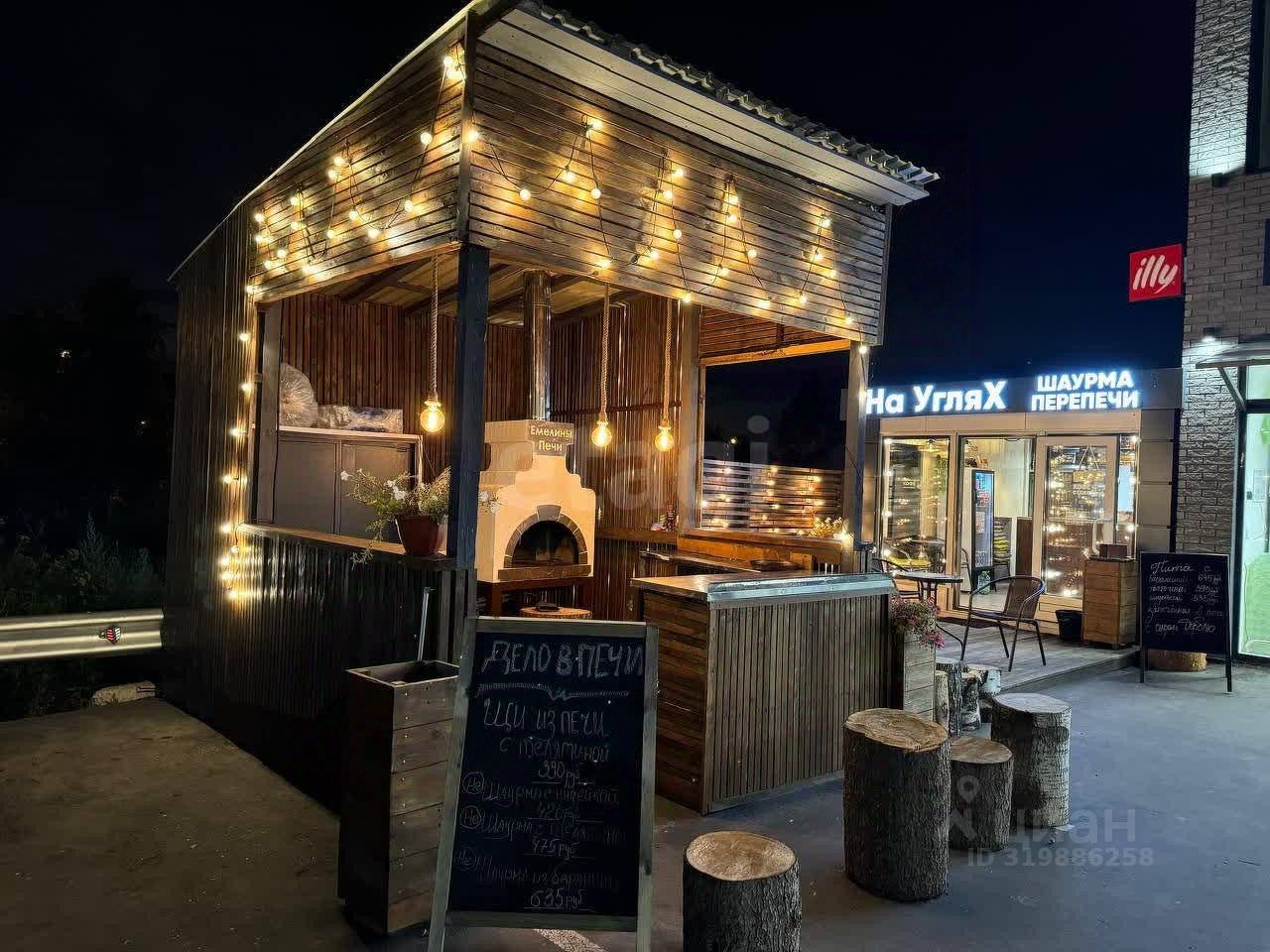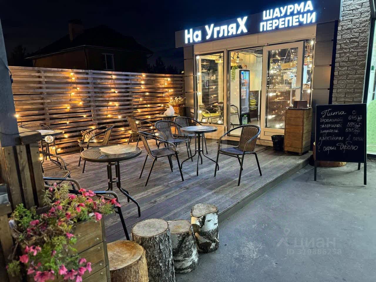 Полностью оборудованное помещение: печь дровяная, ларь морозильная 2 штуки, гриль-пресс, слайсер, холодильные шкафы, аппарат для шаурмы, для курицы гриль, комбайны, кухонный комбайн, мясорубка, кондиционер,