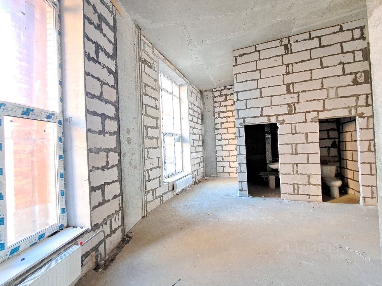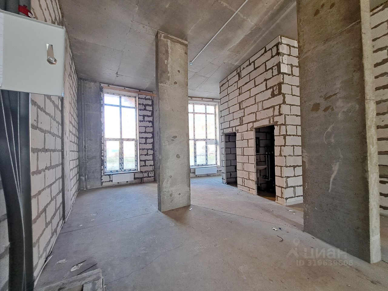 У входа парковочная зона. Помещение свободной открытой планировки, отапливаемое, в бетоне с витринными окнами и мокрыми точками.