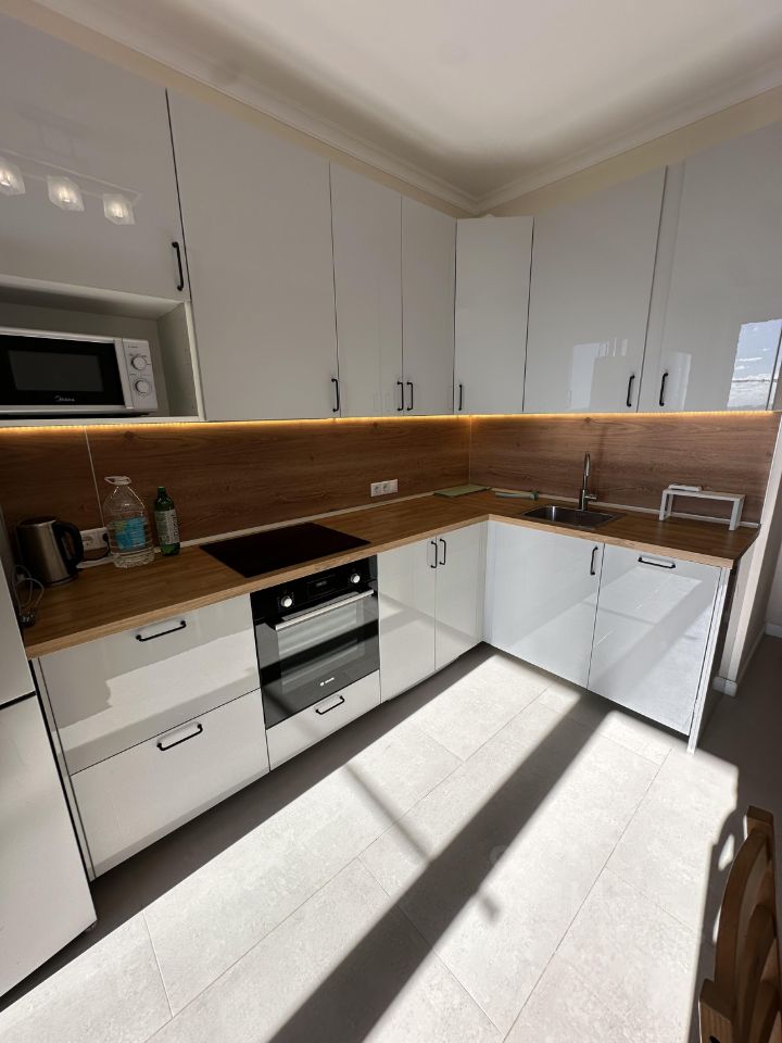 Квартира оснащена встроенной мебелью и техникой (посудомойка, плита, духовка, холодильник, 2 кондиционера, Smart TV)