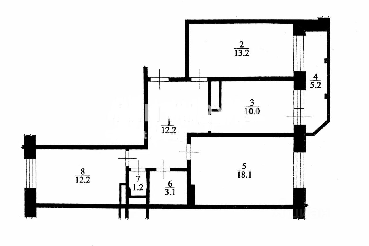 Основные параметры: Общая площадь: 71,4 м² + лоджия 5,2 м² Жилая площадь: 43,5 м² (3 изолированные комнаты: 13,2 м², 18,1 м², 12,2 м²) Просторная кухня: 10 м² Этаж: 8 (в монолитном доме с железобетонными перекрытиями) Особенности планировки: ''распашонка'' — окна выходят на две стороны
