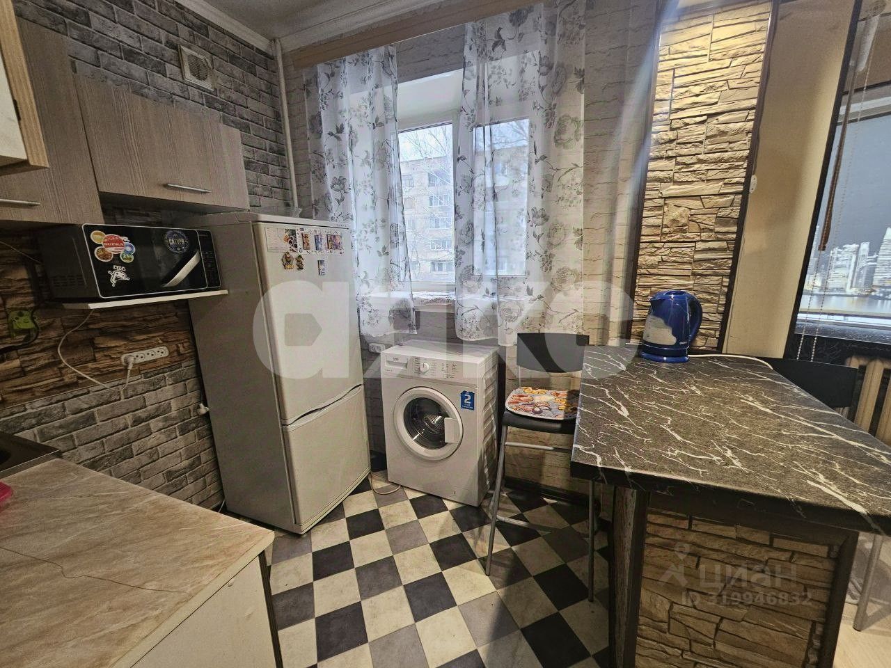 В квартире есть все необходимое для проживания: холодильник, микроволновая печь, стиральная машина, телевизор.