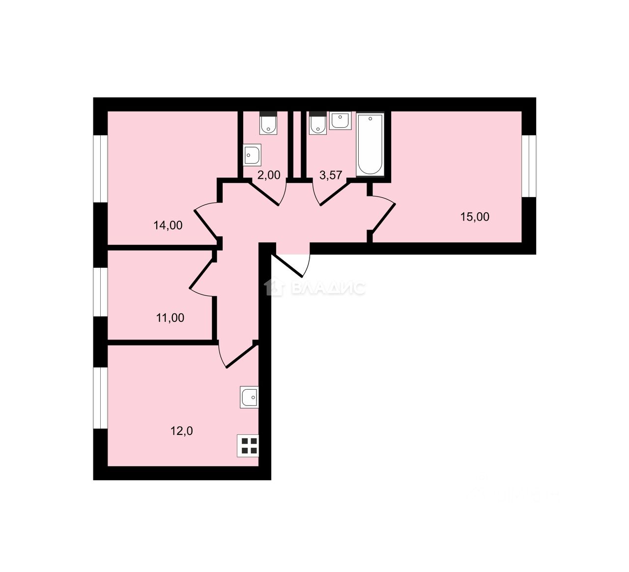 продам 3-к, Сергея Жадобкина, 98 600 000 ₽