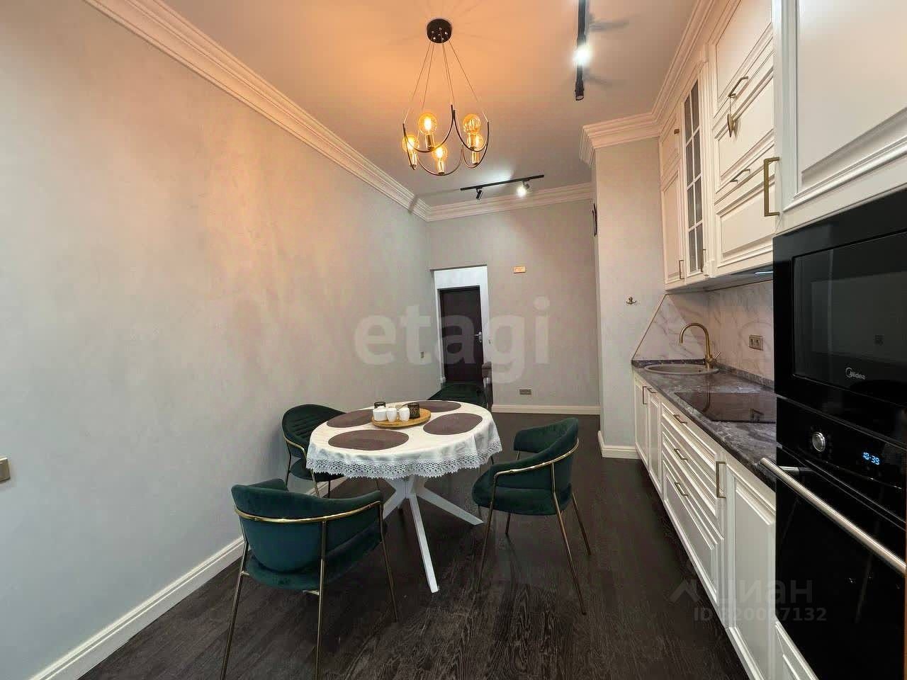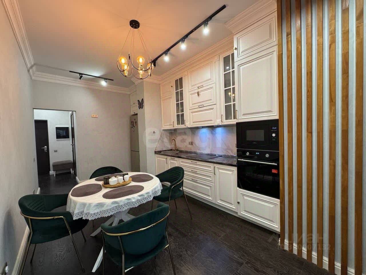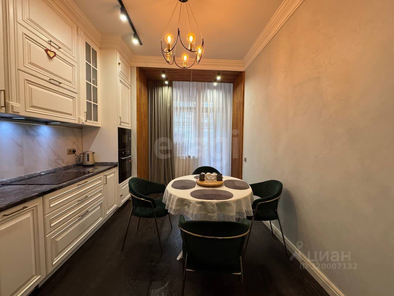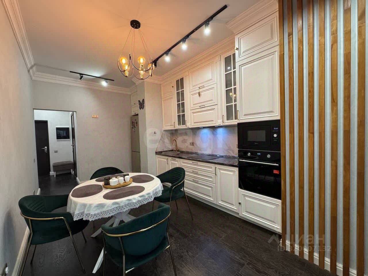 Квартира с высокими потолками и дизайнерским ремонтом полностью готова к проживанию: меблирована, оснащена качественной техникой и отделочными материалами. Планировка продумана для комфортного размещения семьи — просторные комнаты, функциональная кухня, современные инженерные решения. Окна выходят на озелененную территорию комплекса, что гарантирует тишину и приватность.