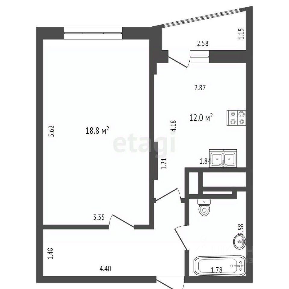Продается великолепная квартира! Площадь квартиры позволяет комфортно разместиться: большая изолированная комната, просторная кухня площадью 12 кв.м., совместный санузел и вместительный балкон с встроенным шкафом.