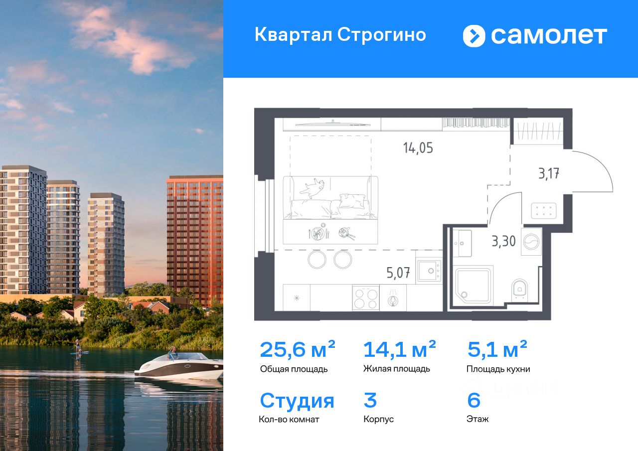 Предлагается квартира студия комфорт-класса 25,59 кв.м в корпусе 3 на 6 этаже, в ЖК ''Квартал Строгино'' Квартира без отделки. Доступность опции ''отделка'' и возможность комплектации мебелью и декором уточняйте у застройщика.