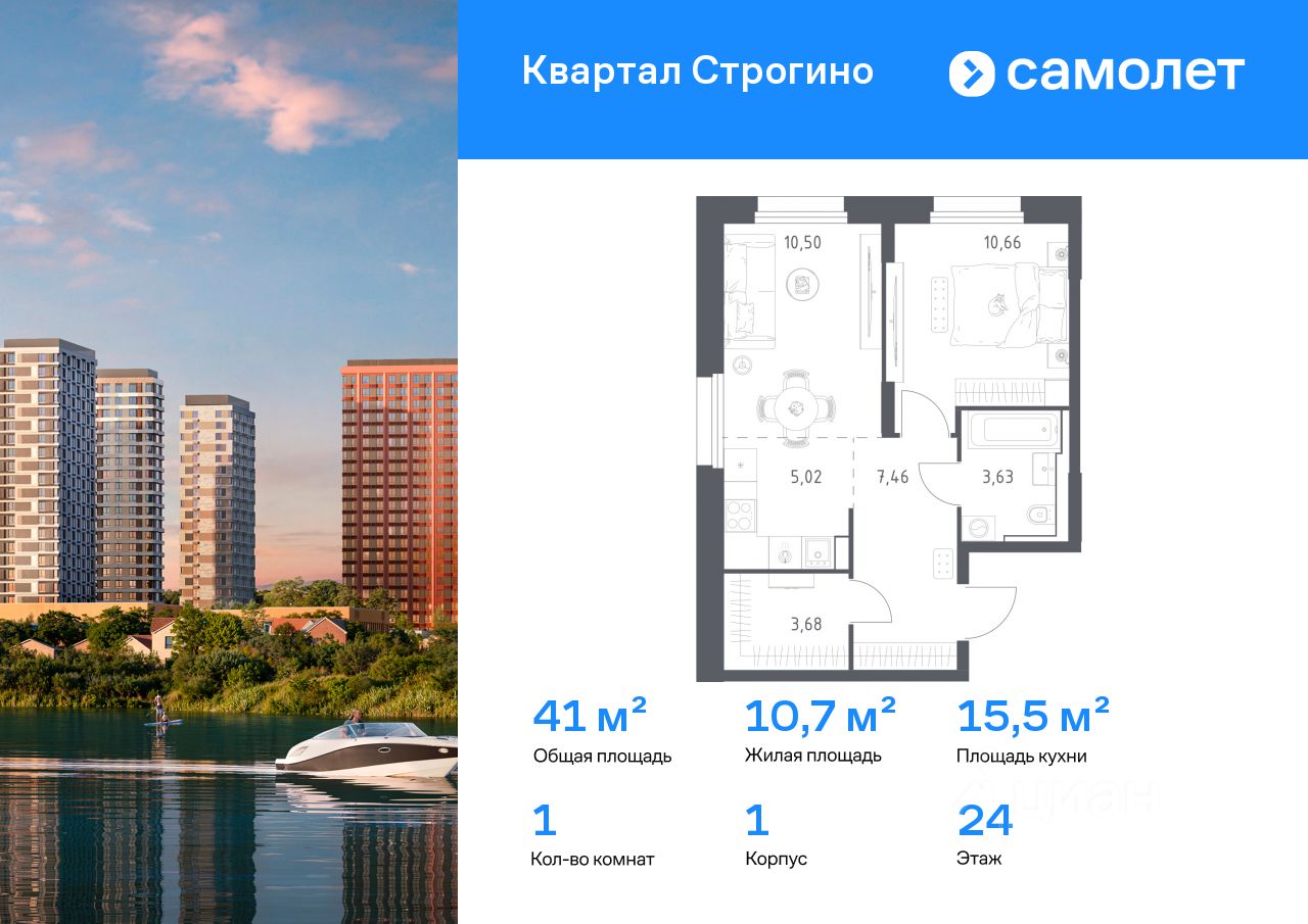 Предлагается 1-комнатная квартира комфорт-класса 40,95 кв.м в корпусе 1 на 24 этаже, в ЖК ''Квартал Строгино'' Квартира с чистовой отделкой. Доступность дополнительных опций уточняйте у застройщика.