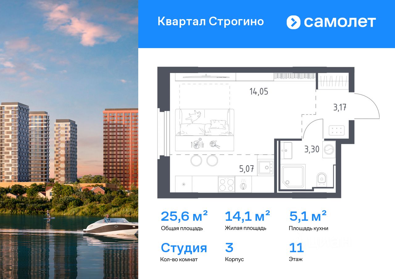 Предлагается квартира студия комфорт-класса 25,59 кв.м в корпусе 3 на 11 этаже, в ЖК ''Квартал Строгино'' Квартира без отделки. Доступность опции ''отделка'' и возможность комплектации мебелью и декором уточняйте у застройщика.