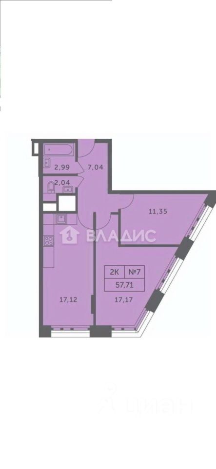 Общая площадь 57,7 метров. Две раздельные комнаты. Полностью в ремонте.